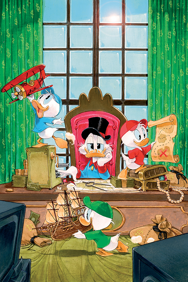 Savvy tour guide BRANDON MONTCLARE and cunning cartographer TOMMASO RONDA chart a scenic course through space, time, and memory in DuckTales #5 - a route richly reflected in newly minted covers by RONDA, IVAN BIGARELLA, FRANCESCO TOMASELLI, CARLO LAURO, and ALAN QUAH!