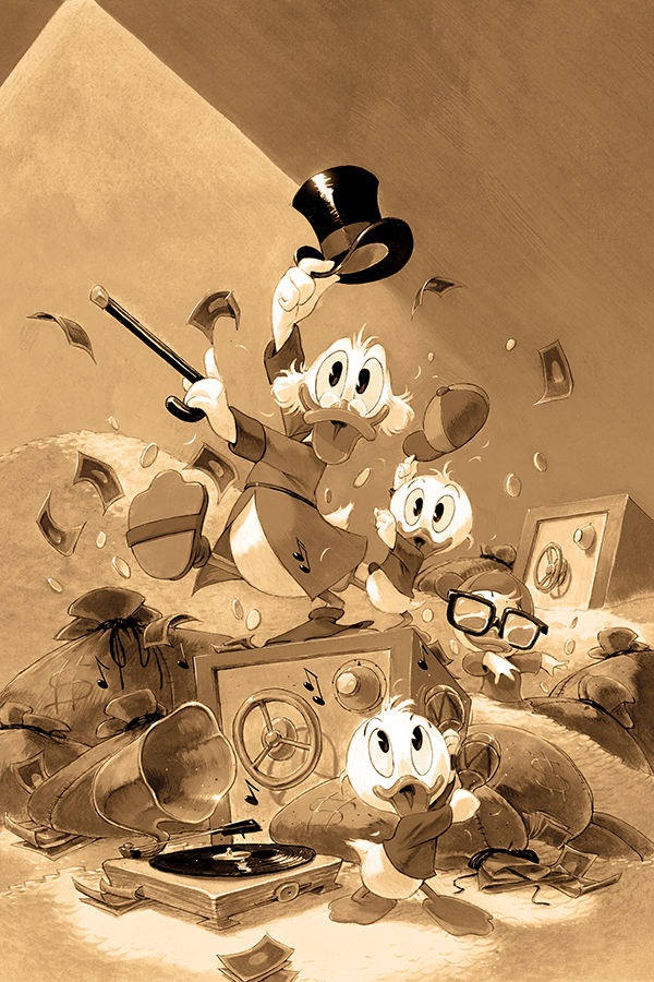 Grizzled prospectors BRANDON MONTCLARE and TOMMASO RONDA unearth a wealth of adventures from Scrooge's storied past in DuckTales #11 - blanketed by a blizzard of covers by RONDA, IVAN BIGARELLA, FRANCESCO TOMASELLI, CARLO LAURO, and DREW MOSS!