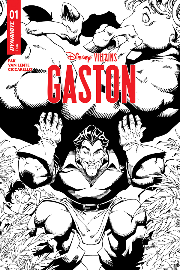 Highly animated authors GREG PAK (Lilo & Stitch) and FRED VAN LENTE (Conan the Avenger) join forces with artiste extraordinaire MILENA CICCARELLO to finally bring readers the tale that they have surely been clamoring for with Disney Villains: Gaston - featuring appropriately adoring covers courtesy of CICCARELLO, LESLEY "LEIRIX" LI, TED BRANDT & RO STEIN, and WILL ROBSON!