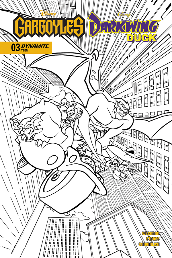Find out at least some of the answers in the action-filled pages of Gargoyles/Darkwing Duck #3 - painstakingly packaged by co-authors GREG WEISMAN and TAD STONES and artist CIRO CANGIALOSI, with polishing touches from STONES, CANGIALOSI, CARLO LAURO, and IVAN BIGARELLA!