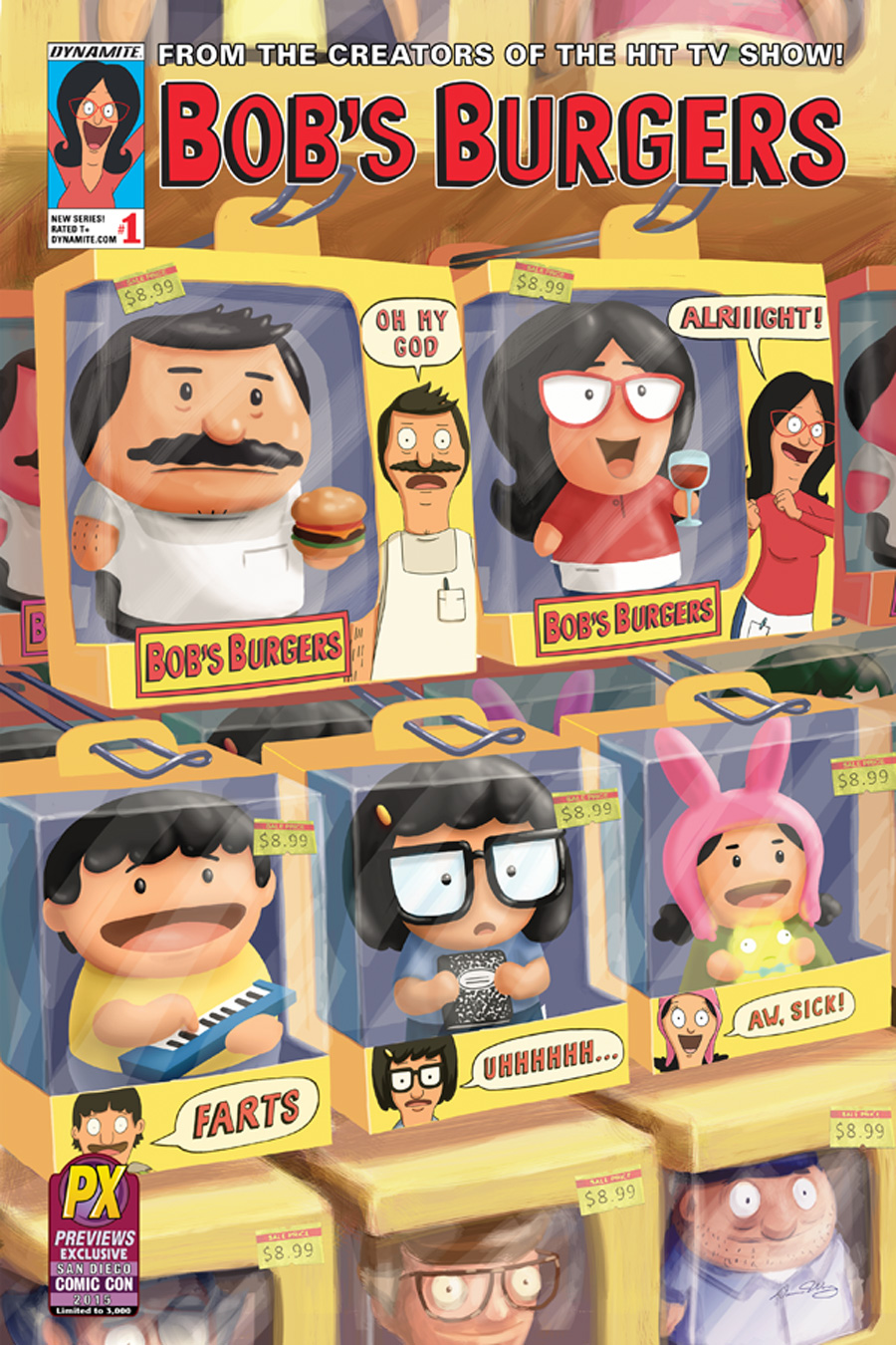 Bob's Burgers (Vol. 2) #1 SDCC Retailer Exclusive: Featuring a cover by artist Damon Wong, this variant edition (Cover K) was exclusively created for sale by retailers exhibiting at SDCC. Fans can visit the Diamond Comics booth (Booth #2401) to pick up a flier indicating which retailers on-site will be selling the special comic.