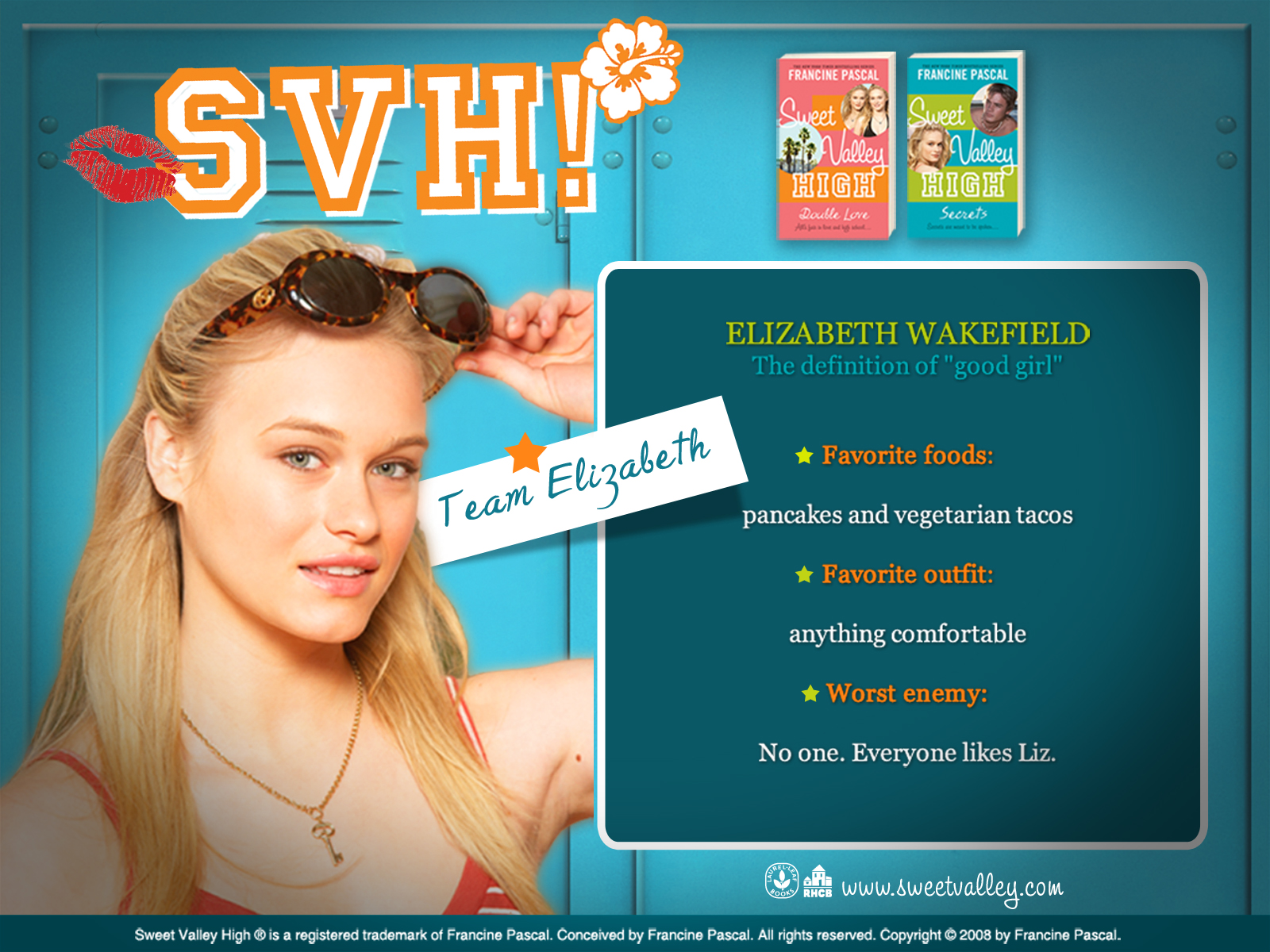 Sweet Valley High follows the exploits of identical twins Elizabeth and Jessica Wakefield as they endure the common struggles of daily teenage life. These two beautiful young women live in the fictitious Sweet Valley, California. Elizabeth is warm, friendly, and sincere, while her twin sister Jessica is flirty, mischievous, and irresponsible.