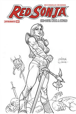 Rating: Teen+ Cover G UPC: 72513036484501071 Genre: Sword and sorcery Writer: Rory McConville Artist: Pablo de Bonis Publication Date: May, 2026 Format: Comic Book Page Count: 32 On sale date: 5/6/2026 . "Know also, 'o prince, that in the self-same days that the Cimmerian did stalk the Hyborian Kingdoms, one of the few swords worthy to cross with his was that of Red Sonja, warrior-woman out of majestic Hyrkania." A bold new series, featuring the Dynamite Debut of writer Rory (King Spawn) McConville and artist Pablo de Bonis! Red Sonja must protect the last descendent of an ancient bloodline from a revolutionary movement determined to reshape all of Hyboria! Featuring the debut of the Cult of the Rising Sun and several new friends and foes of the She-Devil with a Sword! Be there! Cover artists include: Stuart Sayger, Lucio Parillo, Joseph Michael Linsner, Mike Rooth and a stunning piece of cosplay by Woman of Wonder plus a special PREMIUM MYSTERY BLIND BAG containing three limited editions of the issue selected randomly from a range of covers exclusive to this offering! Please Note: The number of Blind Bags is limited, and allocations may occur. Rory McConville is an Irish writer living in London. He has written several series for 2000 AD including Judge Dredd and Department K, and also co-created the historical graphic novel Big Jim: Jim Larkin and the 1913 Lockout. His most recent work includes the graphic novel Write It In Blood for Image Comics along with King Spawn, also for Image Comics. |