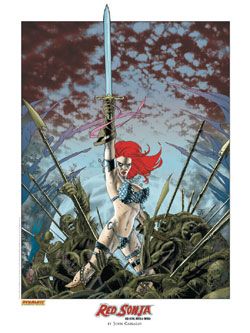 SKU: C103808 This beautiful lithograph by artist extrordinare John Cassaday showcases the She-devil with a Sword perfectly. Measuring 18 x 24 and printed on archival high quality 80lb. Gallerie Art Silk Stock paper it is perfect for framing. Also available signed by Cassaday.