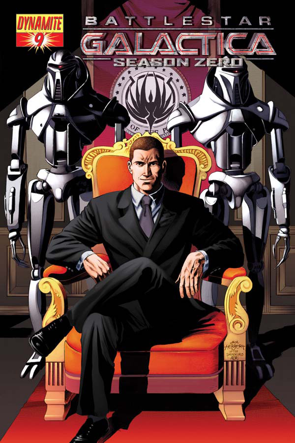 Price: $2.99 Shipping: Sold OutSKU: C109277 Covers: Jackson Herbert and Photo Cover Writer: Brandon Jerwa Penciller: Jackson Herbert Colorist: Genre: Science Fiction Awards: N/A Publication Date: MARCH, 2008 Format: Comic Book Rights: WW The countdown has begun! Our 12 issue "season" of New Battlestar Galactica: Season Zero races towards its apocalyptic conclusion as we begin our final story arc! Under the guiding hand of writer Brandon Jerwa, joined by artist Jackson Herbert, Season Zero has been praised for continuing the "unseen" stories of the Galactica Universe. Now, with issue #9, the threads begun in issue #0 continue to wind together as Adama must face the growing presence of Byron Dane, whoi also happens to be on the radar of the human model cylons living among the colonies! Featuring two covers, one by Herbert and the other a Galactica Photo Cover!