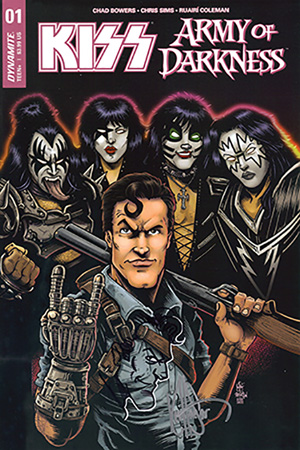 SKU: C127098 Rating: Teen + Cover: Ken Haeser remarked Writer: Chad Bowers, Chris Sims Art: Ruairi Coleman Genre: Science Fiction/Horror Publication Date: August 2018 Format: Comic Book Page Count: 32 Pages UPC: 725130270986 ON SALE DATE: 8/29/2018 Artist Ken Haesar (Living Corpse) presents one-of-a-kind, original art sketches on his own KISS/Army of Darkness #1 cover! KISS is on top of the world and rocking faces until the night disciples of The Destroyer show up and the band disappears. With the tour canceled, a young Ash misses one of the most important events of his life that will change his destiny. Now the Chosen One has to get back on the right path and join the KISS ARMY OF DARKNESS!
