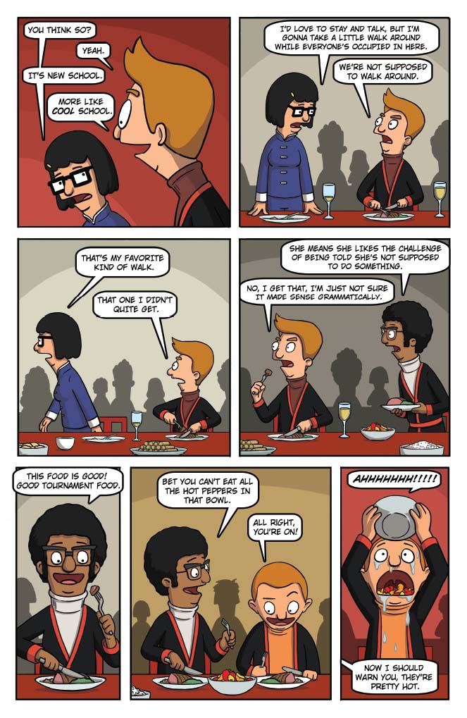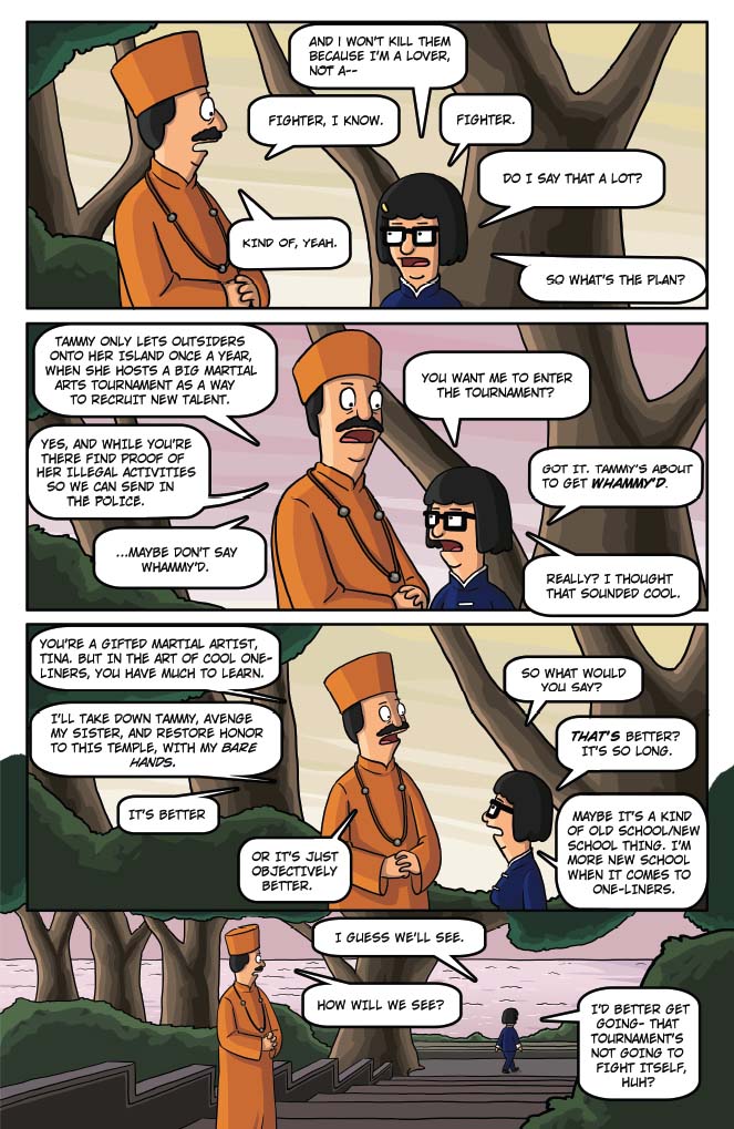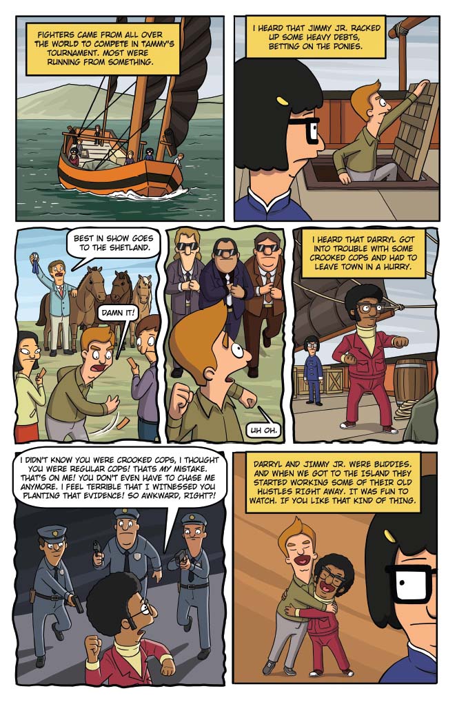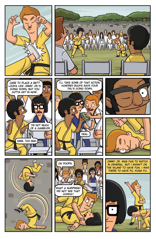 Price: $14.99 Shipping: Sold OutSKU: C1524102121 Rating: Teen + Cover: Jay Howell Writer: Rachel Hastings, Anneliese Waddington, Mark Von Der Heide, Jeff Drake, Brian Hall, Mike Olsen Art: Tom Connor, Anthony Aguinaldo, Kimball Shirley, Sara Richard, Circus Leveo, Marcelo Benavides, Maggie Harbaugh, Hector Reynoso, Anthony Imperato, Timothy Hopkins, Rich Wilkie, Mike Guerena Publication Date: December 2016 Format: Softcover Page Count: 120 pages ON SALE DATE: 12/14 You'll lick your lips with this latest helping of the Belcher family, the stars of Fox Television's fan-favorite animated sitcom! Those delightful little scamps Tina, Gene, and Louise are always daydreaming of a life far from the reality of the family restaurant, whether they become boy-crazy martial artists, mutated chinchillas, or the knights of King Arthur's court! Satisfy with ample portions of hilarity, cooked to perfection by the fine folks at the Emmy Award-winning studio Bento Box Entertainment! ISBN-13: 978-1-5241-0212-8