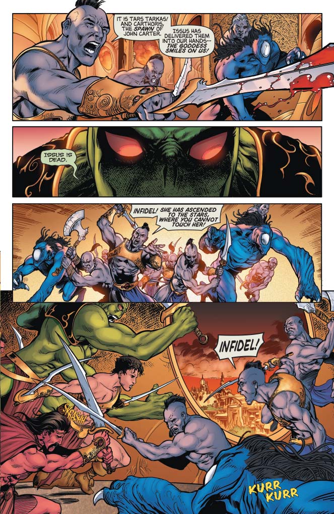 Price: $29.99 Shipping: Sold OutSKU: C1524105147 Rating: Mature Cover: Joe Jusko Writer: Arvid Nelson Art: Daniel Sampere, Stefano Martino, Vincente Cifuentes, Leandro Oliviera, Everton Sousa, Rafael Lanhellas Publication Date: December 2017 Format: Softcover Page Count: 496 pages ON SALE DATE: 12/13 John Carter has freed Mars from Issus, the false goddess whose tyranny once ruled the entire planet... but at a great personal cost. Dejah Thoris, his beloved princess, was taken by Matai Shang, a renegade priest determined to avenge the planet's shattered religion. Activating a doomsday device to destroy the fragile Martian atmosphere, Shang flees into the unknown regions of the north. Carter, aided by his son Carthoris and trusted alien pet Woola, must unite the many races of Mars - despite the ages of distrust and open warfare among them - for the singular purpose of averting Judgment Day! Collects issues 19-35, plus issues 0 &100! ISBN-13: 978-1-5241-0514-3