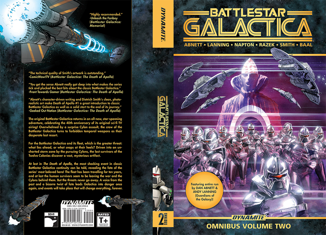 Price: $29.99 Shipping: Sold OutSKU: C1524107247 Rating: Teen + Cover: Alex Ross Writer: Dan Abnett, Andy Lanning Art: Cezar Razek, Dietrich Smith, Aneke, Kewber Baal Genre: Science Fiction Publication Date: September 2018 Format: Softcover Page Count: 480 Pages ON SALE DATE: 9/5/2018 The original Battlestar Galactica returns in an all-new, star-spanning adventure, celebrating the 40th anniversary of its original sci-fi TV airing! Overwhelmed by a surprise Cylon assault, the crew of the Battlestar Galactica turns to forbidden temporal weapons as their desperate last resort. For the Battlestar Galactica and its fleet, which is the greater threat: what lies ahead, or what snaps at their heels? Driven into an uncharted storm zone by the pursuing Cylons, the last survivors of the Twelve Colonies discover a vast, mysterious artifact. At last, the most shocking event in classic Battlestar Galactica continuity can be told, revealing the fate of the series' most beloved hero! The fleet has been travelling for ten years, and at last the human survivors seem to be leaving the war and the Cylons behind them. But the threats never go away. A voice from the past and a bizarre twist of fate leads Galactica into danger once again, and events will take place that will change everything, forever. ISBN-13: 978-1-5241-0724-6