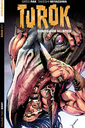 Price: $16.99 Shipping: Sold OutSKU: C1606905988 Rating: Teen + Cover: Bart Sears Writer: Greg Pak Art: Takeshi Miyazawa Publication Date: April 2015 Format: Softcover Page Count: 120 pages ON SALE DATE: April 22 Turok has faced horrible forces from the east... but what's now coming from the west? From the mind of Greg Pak, celebrated writer of Batman/Superman and Action Comics, comes a bold, new vision of the Dinosaur Hunter that you never saw coming! Having defeated an incursion of vicious Crusaders, Turok seeks out the great mound city where his cursed parents rest for eternity. When warriors riding flying reptiles disrupt the peace, he discovers that his home is the latest conquest of Mongol hordes. Can Turok stop their invasion of North America... or will he switch sides and become the Khan of the New World? ISBN-13: 978-1-60690-598-2
