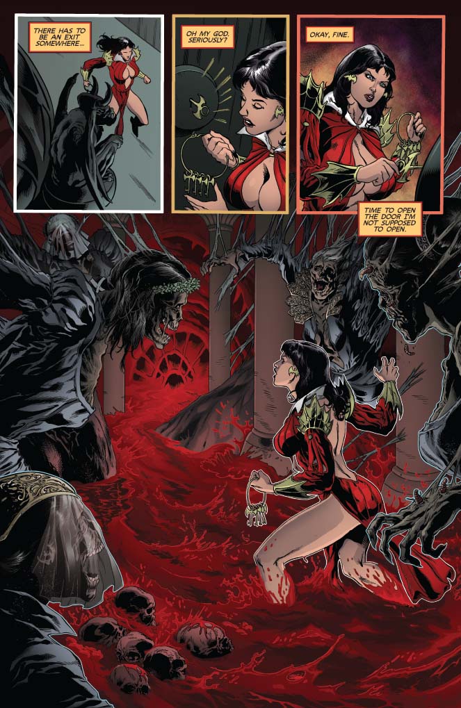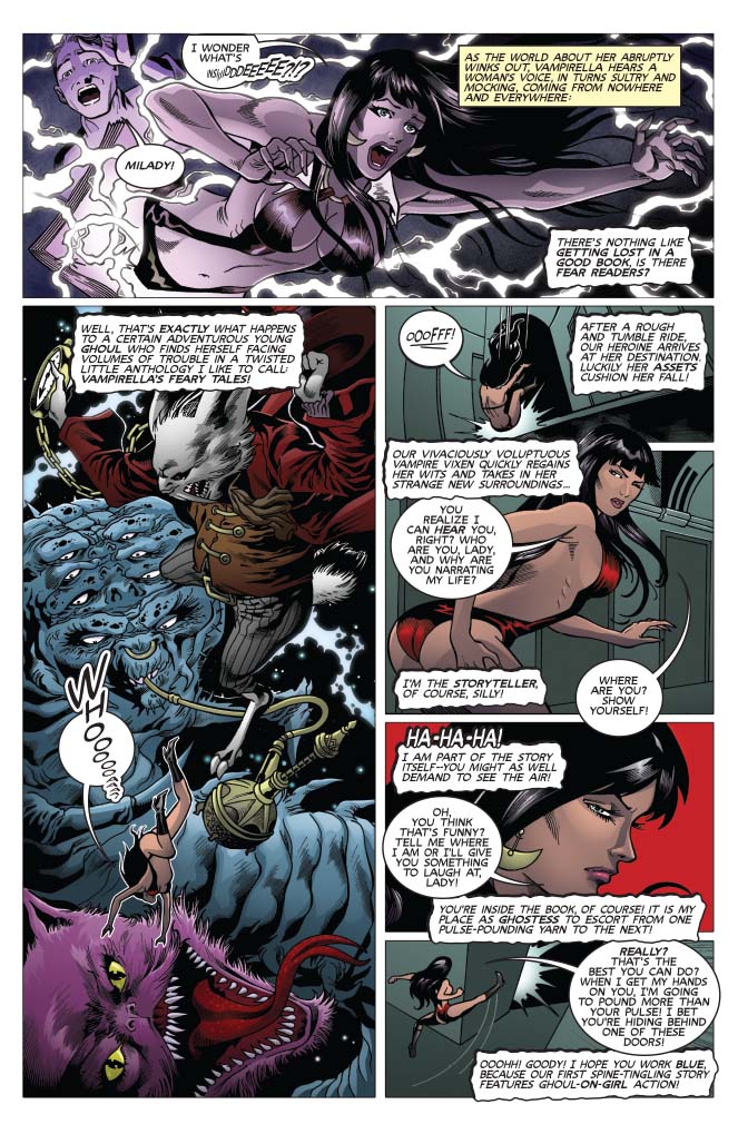 Price: $19.99 Shipping: Sold OutSKU: C1606906860 Rating: Teen + Cover: Jay Anacleto Writer: Nancy A. Collins, Gail Simone, Devin Grayson, John Shirley, Steve Bissette, Elaine Lee, Denis St. John, Joe R. Lansdale, Eric Trautmann, Stuart Moore Art: Jack Jadson, Ronilson Freire, Elmo Eklabuz, Bilquis Evely, Eman Casallos, Mirka Andolfo, Chad Shepherd Publication Date: July 2015 Format: Softcover Page Count: 160 Pages ON SALE DATE: July 29 Nancy A. Collins (Swamp Thing, Sunglasses After Dark) has called upon some of today's finest creative talents - including Gail Simone, Steve Niles, Joe R. Lansdale, Devin Grayson, Stephen R. Bissette, and many more - to celebrate Vampirella's 45th Anniversary by crafting an anthology of twisted tales, bizarre bedtime stories, and fearsome fables in the tradition of the original Warren magazines, each featuring everyone's favorite sexy, kick-ass vampire-turned-monster hunter. While exploring the Transylvanian castle she's recently inherited, Vampirella discovers a strange old book of "Feary Tales" that seems oddly familiar. Upon opening it, she is sucked inside its pages and lands in a weird alternate reality, where she is compelled by a disembodied voice calling itself 'The Storyteller' to live out each of the 'feary tales' if she ever hopes to return to reality. ISBN-13: 978-1-60690-686-6