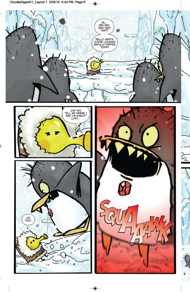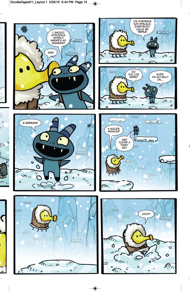 Price: $12.99 Shipping: In-Stock!SKU: C1606907042 Rating: Teen + Cover: Rebekie Bennington Writer: Meredith Gran, Mario Udzenija Art: Steve Uy Publication Date: September 2015 Format: Hardcover Page Count: 152 pages ON SALE DATE: September 23 The hugely popular, award-winning game is now a full-color adventure for everyone to read and enjoy! Our jump-inclined hero Doodler has landed in a mysterious wintry world - and an inhospitable one, at that! With the help of an enthusiastic new friend, can he dodge killer penguins and weather the storm? And what destiny lies beyond this frigid wasteland, where Doodler might prove himself a champion against evil ninjas and rampaging robots? Written by Meredith Gran (Adventure Time: Marceline, Scream Queens) with fantastic art by Steve Uy (Avengers Initiative, JSA Classified). "This comic really succeeded in bringing the game to new places in a different medium... Really engaging, fun art (and) cool characters." - Adventures in Poor Taste ISBN-13: 978-1-60690-704-7