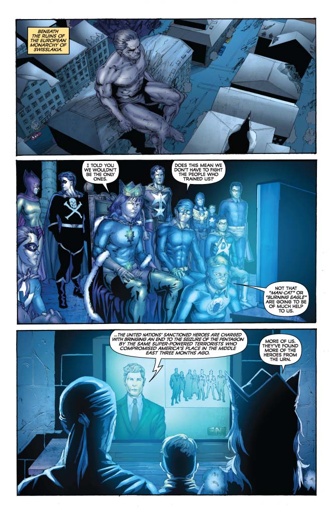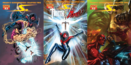 Price: $2.99 Shipping: Sold OutSKU: C725130126337 Rating: TEEN+ Covers: Alex Ross, LUCIO PARRILLO (1-in-5), STEPHEN SEGOVIA (1-in-12) Writer: Jim Krueger Penciller/Inker: Edgar Salazar (main story), Doug Klauba (special origin story) Colorist: TBD Genre: SUPER-HERO, SCIFI, ADVENTURE Awards: N/A Publication Date: SEPTEMBER, 2009 Format: Comic Book Rights: WW Age range: 16+ UPC: 725130126337 The Superpowers continue to battle one of their own in the continuing adventures of Dynamite's powerful superhero odyssey! Featuring the FIRST appearance of TRUTH & DARE! Overseen by Alex Ross and written by Jim Krueger, artist Edgar Salazar continues to sizzle and issue #3 also features the painted - by Doug Klauba - origin sequence (2 BIG pages) of Man-Cat! Project Superpowers: Chapter 2 #3 features a main cover by Alex Ross and chase covers by Lucio Parrillo (1-in-5) and Stephen (Wolverine) Segovia (1-in-12)!