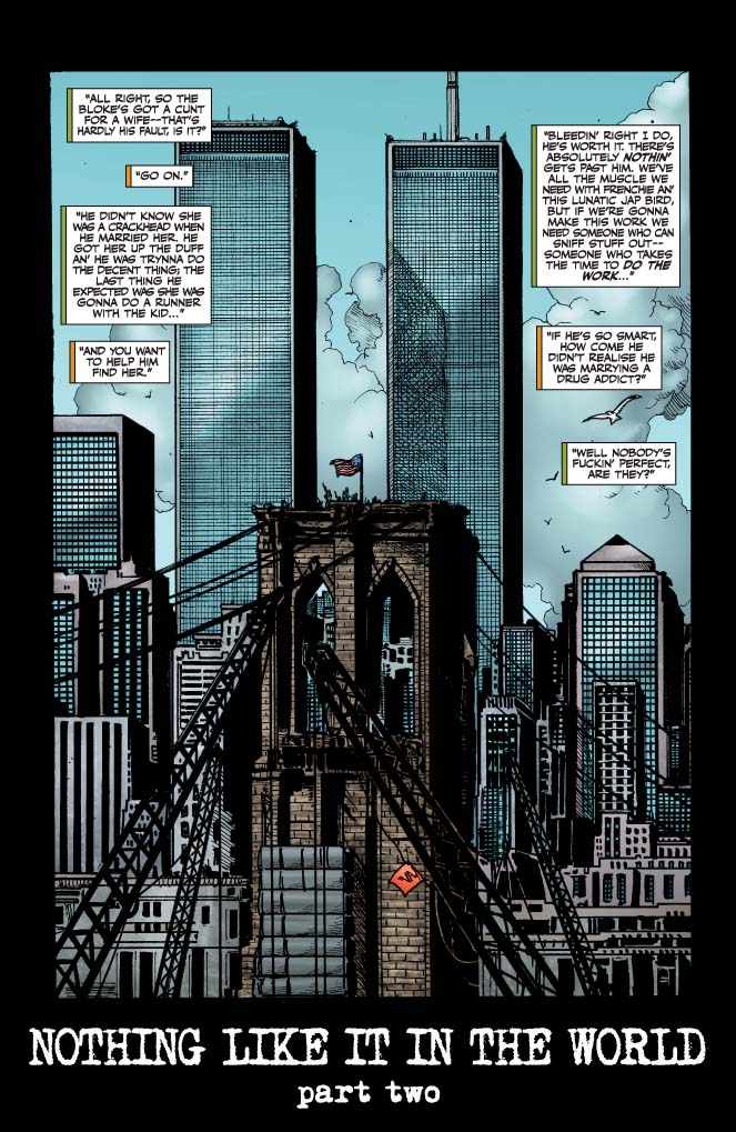 SKU: C725130129918 Rating: MATURE Covers: DARICK ROBERTSON Writer: GARTH ENNIS Penciller/Inker: DARICK ROBERTSON Colorist: Tony Avina Genre: SUPERHERO Awards: N/A Publication Date: NOVEMBER, 2009 Format: Comic Book Rights: WW Age range: 16+ UPC: 725130129918 Mother's Milk's story concludes with a bang, as we find out the nature of the debt he owes Butcher and see him bear witness to a great American tragedy. Hughie gets another view of The Boys' mission, one he hadn't considered before, in part two of Nothing Like It In The World.