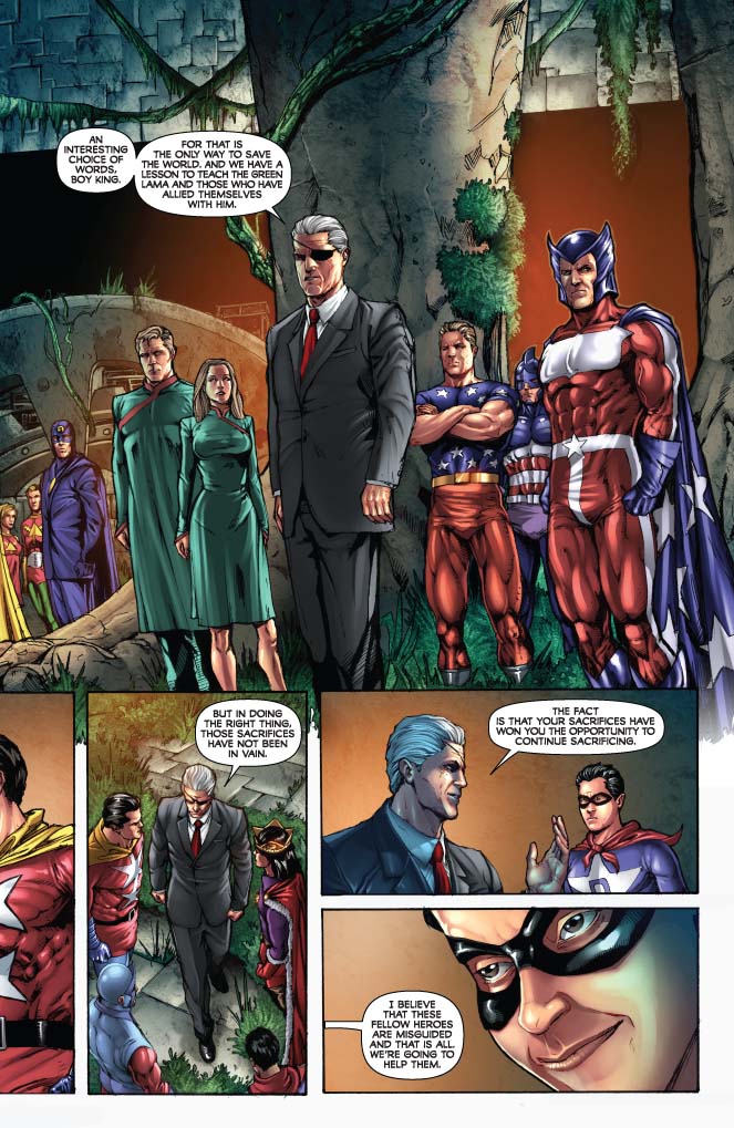 Price: $2.99 Shipping: Sold OutSKU: C725130135117 Rating: TEEN+ Covers: Alex Ross, Jonathan Lau (1-in-5) Writer: Jim Krueger Penciller/Inker: Edgar Salazar (main story), Doug Klauba (origin story) Colorist: TBD Genre: SUPER-HERO, SCIFI, ADVENTURE Awards: N/A Publication Date: JANUARY, 2010 Format: Comic Book Rights: WW Age range: 16+ UPC: 725130135117 The Inheritors have fled the battle with the Superpowers and taken the Super Mysterymen back to Swisslakia to educate the state sponsored heroes in their version of the events. Meanwhile, The Big Shots work on their plan to capture Zeus while other members of the team confront Captain Future in a battle that will change all of their lives - and the world - forever! PLUS: The origin of The Face by Ross, Klauba and Krueger!