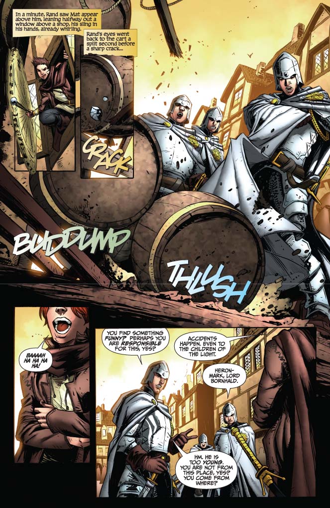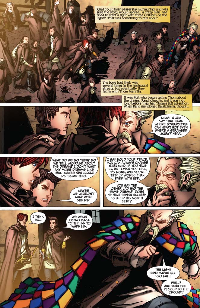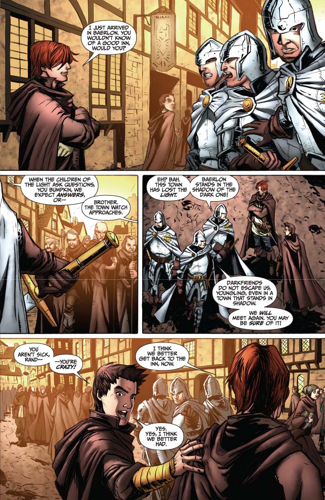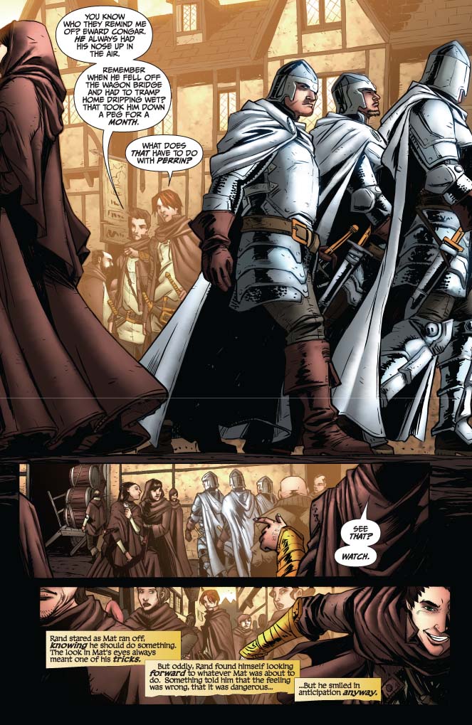 SKU: C725130162403 Rating: TEEN+ Cover: Andie Tong Writer: Robert Jordan, Chuck Dixon Penciller/Inker: Andie Tong Colorist: Nicolas Chapuis Genre: FANTASY Publication Date: MAR 2011 Format: Comic Book Page Count: 32 pages UPC: 725130162403 While the group is holed up in Baerlon avoiding white cloaks, Moiraine and Nynaeve clash over the path they are about to undertake. And Rand and Egwene have a long talk about their past, and potential futures...in the next chapter in this adaptation of Robert Jordan's Wheel of Time: The Eye of the World!