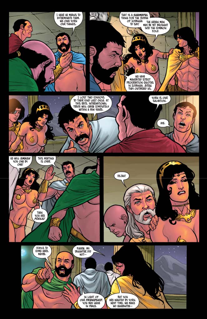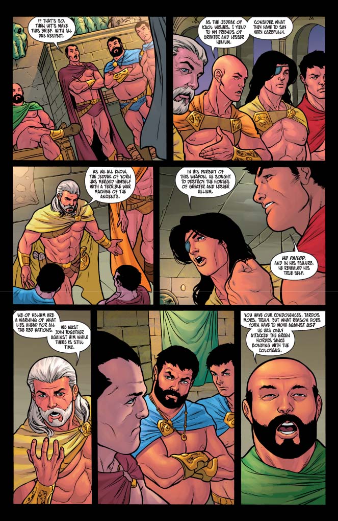 Price: $3.99 Shipping: Sold OutSKU: C725130171078 Rating: MATURE Covers: Arthur Adams (25%), Paul Renaud (25%), Joe Jusko (25%), Ale Garza (25%) Writer: Arvid Nelson Penciller/Inker: Carlos Rafael Colorist: Carlos Lopez Genre: Sci Fi, Fantasy, Super-Hero Awards: N/A Publication Date: JUNE 2011 Format: Comic Book Page Count: 32 pages Rights: WW Age range: 16+ UPC: 725130171078 Dejah Thoris has united all the red Martians nations against the Jeddak of Yorn, but they are no match for him in his living tomb, the terrible War Colossus. Dejah must turn to Yorn's son, the only one who knows the Colossus's weakness. Exploiting the weakness will require a miracle of Martian engineering, and it just so happens that Yorn's son is a genius, the likes of which Mars has not seen for over a thousand years! All is not well, however: there is a traitor among Dejah's allies...