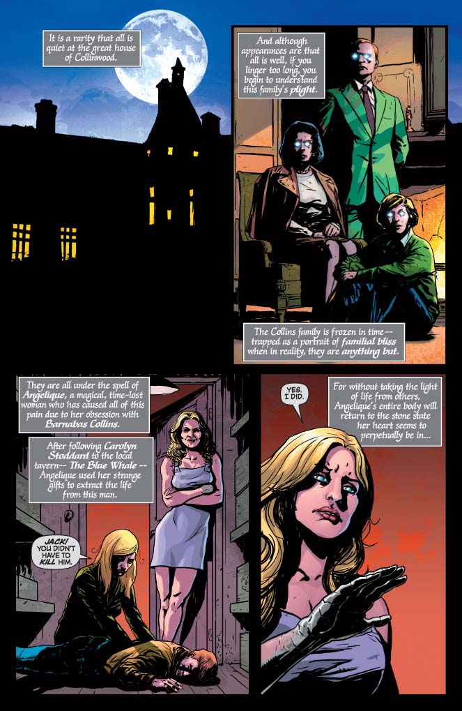 SKU: C72513018398900411 Rating: Teen + Covers: Francesco Francavilla (50%), Aaron Campbell (50%) Writer: Stuart Manning Artist: Aaron Campbell Awards: N/A Publication Date: Jan 2012 Format: Comic Book Page Count: 32 pages Rights: WW Age range: 16+ UPC: 725130183989 00411 A killer is stalking the streets of Collinsport as vampire Barnabas Collins finds himself in a race against time to save the Collins family from a dangerous force. As his eternal nemesis, the witch Angelique, makes her new bid for eternal life, Barnabas and Julia must work out what links Barnabas' dreams to the mysterious statue in time to prevent a tragic death.