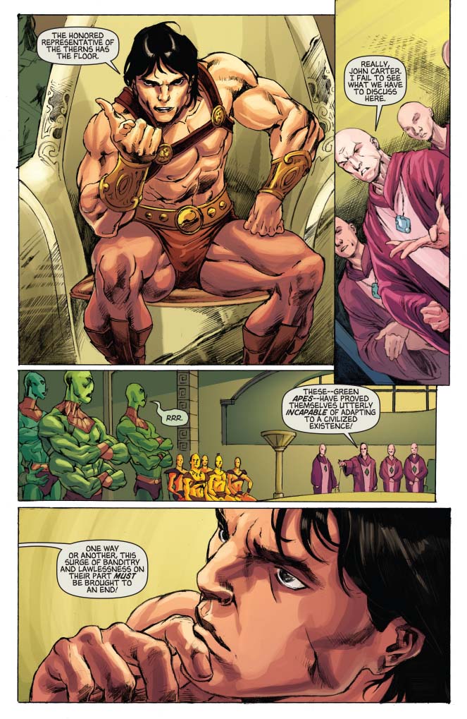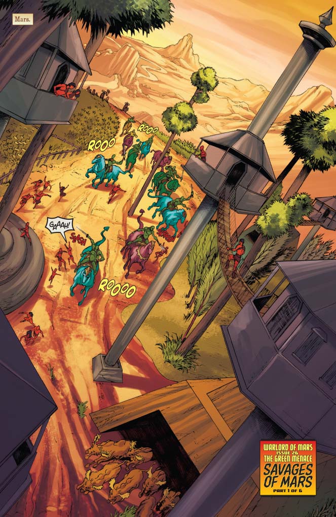 Price: $3.99 Shipping: Sold OutSKU: C72513018404702611 Rating: Mature Covers: Joe Jusko (50%), Lucio Parrillo (50%) Writer: Arvid Nelson Artist: EVERTON SOUSA Colorist: Adriano Lucas Genre: Sci-Fi, Fantasy, Super-Hero Awards: N/A Publication Date: Nov 2012 Format: Comic Book Page Count: 32 pages Rights: WW Age range: 16+ UPC: 725130184047 02611 UPC: 725130184047 02621 John Carter might be the brand-new Warlord of Mars, but his honeymoon's gonna be real short. The savage green Martians start running amok the moment he ascends the throne, threatening to smash the fragile peace he has fought so hard to win. What's behind the uptick in violence? Only John Carter and his old pal Tars Tarkas can find the truth. Warlord of Mars #26 is the first installment of the thrilling Savages of Mars story arc. John Carter's exploits on the Red Planet are just beginning!