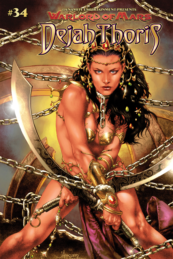 Price: $3.99 Shipping: In-Stock!SKU: C72513018405403411 Rating: Mature Covers: Jay Anacleto (50%), Fabiano Neves (50%) Writer: Robert Place Napton Artist: Deborah Carita Genre: Sci-Fi, Fantasy, Super-Hero Publication Date: Dec 2013 Format: Comic Book Page Count: 32 pages UPC: 725130184054 03411 ON SALE DATE: December 11 UPC: 725130184054 03421 In part 2 of 2, Dejah Thoris and her renegade brother, the twisted Kajak Thoris, circle toward their final confrontation. The lives of her entire family hang in the balance as events from the past collide with the present to dictate the future of Helium's royal family!