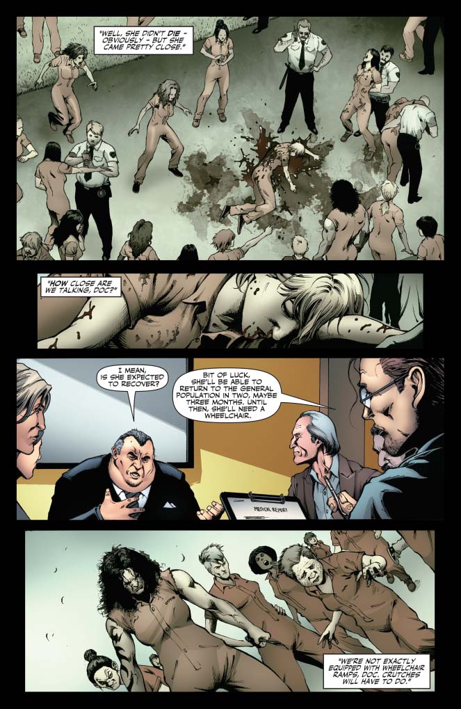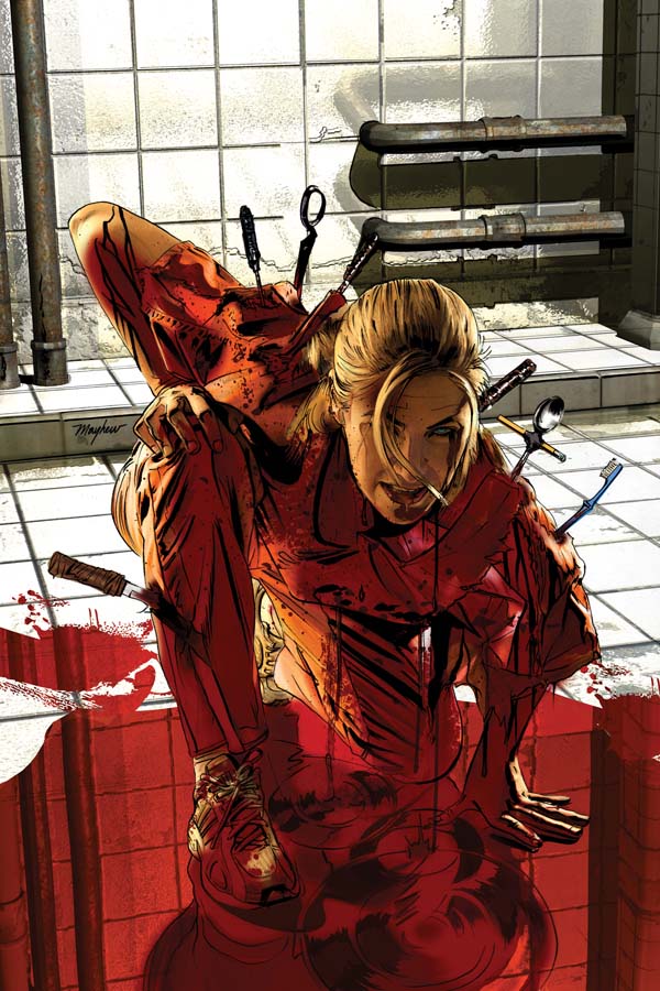 SKU: C72513018410802511 Rating: Mature Covers: Mike Mayhew Writer: Mike Carroll Artist: Eman Cassalos Colorist: Inlight Studio Awards: N/A Publication Date: Mar 2013 Format: Comic Book Page Count: 32 pages Rights: WW Age range: 16+ UPC: 725130184108 02511 ON SALE DATE: March 20 UPC: 725130184108 02521 She is no longer orphaned teen Jessica Blute, or suburban mom Jen Fellows, or the criminal known as Jennifer Blood. She is now just another inmate of Las Chacales Women's Correctional Facility. Friendless. Alone. Stabbed in the back a dozen times by her fellow prisoners. Bleeding out into the dirt.