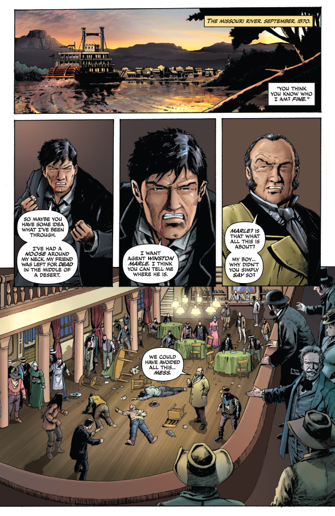 SKU: C72513018606501511 Rating: TEEN+ Covers: Francesco Francavilla Writer: Ande Parks Artist: Esteve Polls Colorist: Marcello Pinto Genre: Western Awards: N/A Publication Date: Mar 2013 Format: Comic Book Page Count: 32 pages Rights: WW Age range: 16+ UPC: 725130186065 01511 ON SALE DATE: March 6 The beginning of a bold new arc that takes the Lone Ranger and Tonto across the Mississippi to the eastern half of the United States. The Ranger wants answers from a federal agent who used and betrayed the West's most iconic heroes. Getting satisfaction proves costly, as neither the Lone Ranger or Tonto are ready for what may be the deadliest setting they've ever faced- the back rooms and hidden agendas of the "civilized" world. Back East, part one of four.