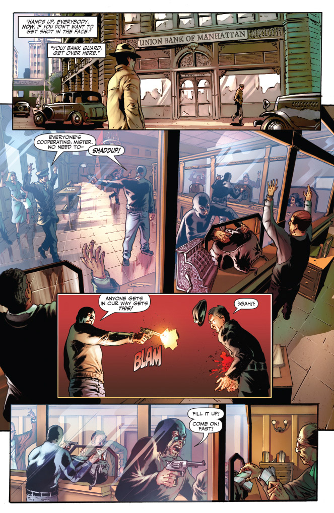 Price: $3.99 Shipping: In-Stock!SKU: C72513018928801211 Rating: Teen + Covers: Alex Ross (25%), Sean Chen (25%), Tim Bradstreet (25%), Francesco Francavilla (25%) Writer: Victor Gischler Artist: Aaron Campbell Genre: Super-Hero, Adventure Awards: N/A Publication Date: Mar 2013 Format: Comic Book Page Count: 32 pages Rights: WW Age range: 16+ UPC: 725130189288 01211 ON SALE DATE: March 20 UPC: 725130189288 01221 UPC: 725130189288 01231 When robbers use deadly tactics to commit a series of bank holdups, The Shadow scours the underbelly of Manhattan to find the culprits. Will his plan to put together his own robbery trap the criminals or simply lead to another murderous bank heist. The Shadow Knows!