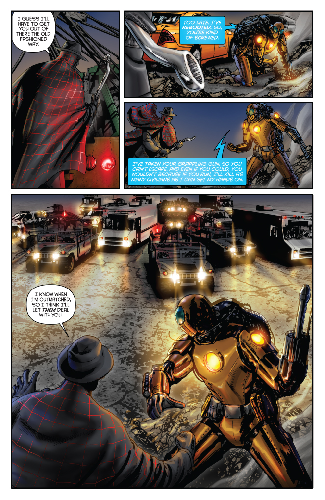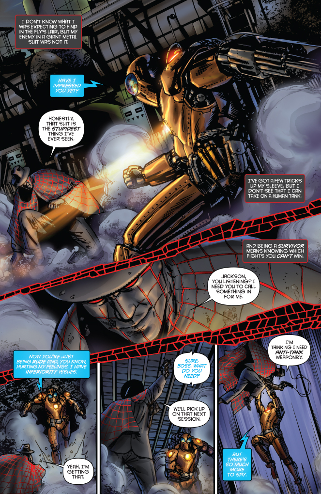 Price: $3.99 Shipping: Sold OutSKU: C72513019086401411 Rating: Teen + Covers: Colton Worley Writer: David Liss Artist: Ivan Rodriguez Genre: Sci-Fi, Fantasy, Super-Hero Awards: N/A Publication Date: Jul 2013 Format: Comic Book Page Count: 32 pages Rights: WW Age range: 16+ UPC: 725130190864 01411 ON SALE DATE: July 17 When The Fly raises the technological stakes, The Spider is bested at his own game. With his network crumbling, his company failing, and his friends helpless, Richard Wentworth faces enemies on all fronts. With fierce battles on New York streets and in skyscraper boardrooms, has The Spider finally met his match?
