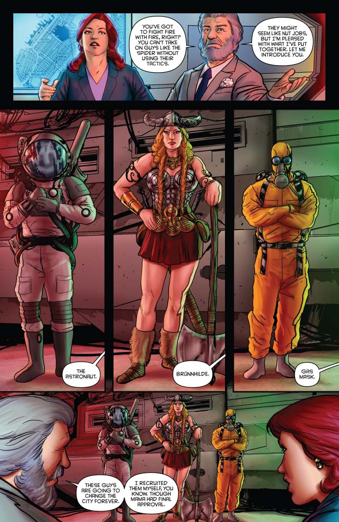 Price: $3.99 Shipping: Sold OutSKU: C72513019086401611 Rating: Teen + Covers: Colton Worley Writer: David Liss Artist: Ivan Rodriguez Genre: Sci-Fi, Fantasy, Super-Hero Awards: N/A Publication Date: Sep 2013 Format: Comic Book Page Count: 32 pages Rights: WW Age range: 16+ UPC: 725130190864 01611 ON SALE DATE: September 18 Richard Wentworth may be down, but he's not out... not when the city still needs the Spider. With his eye on both a ring of crooked cops and a deadly gang uptown, The Spider sets up a carefully orchestrated scheme to take out two birds with one stone. But when an honest cop comes along for the ride, he's got to protect the life of an innocent while making sure the guilty suffer.