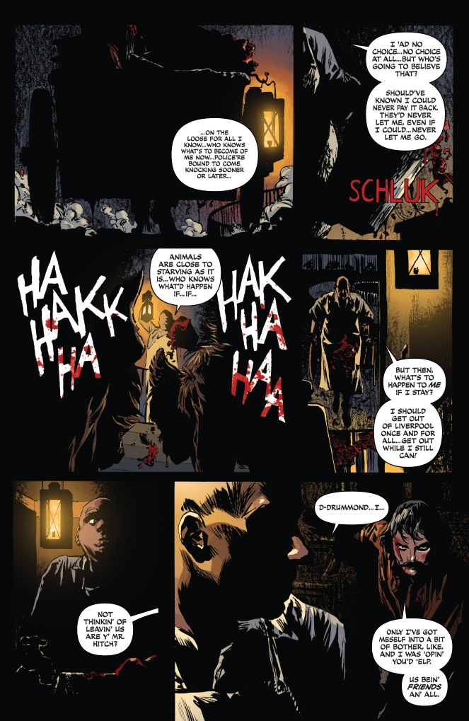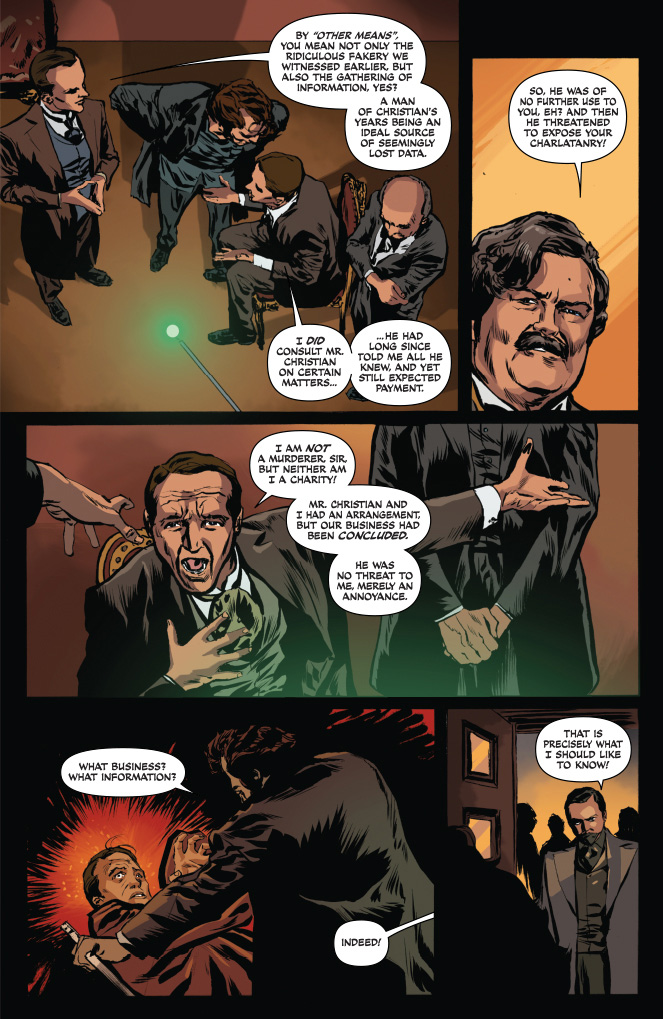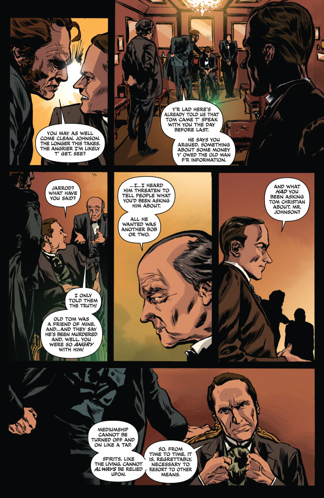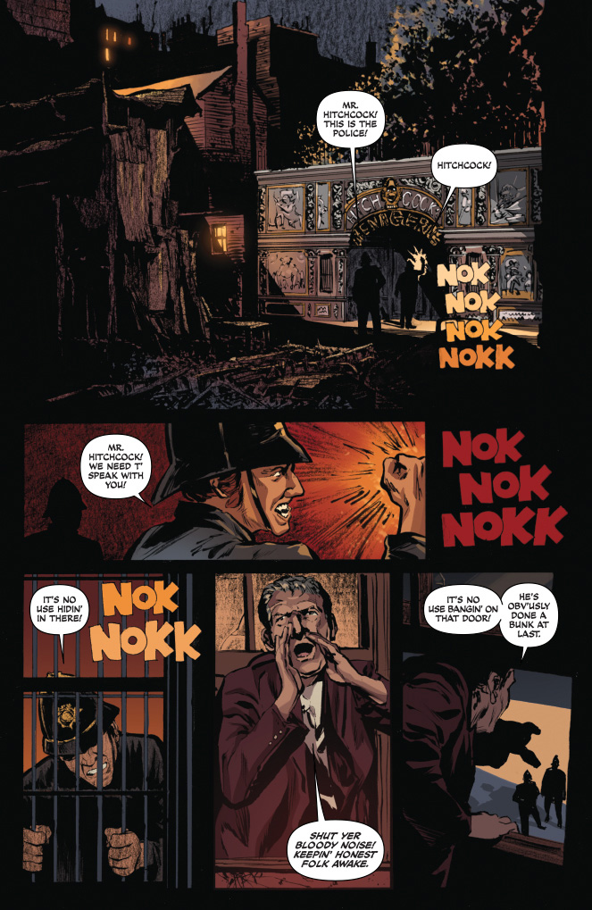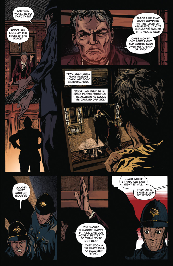 SKU: C72513019935500411 Rating: Teen+ Covers: Francesco Francavilla Writer: Leah Moore & John Reppion Art: Matt Triano Genre: Action/Adventure, Detective Awards: N/A Publication Date: Mar 2013 Format: Comic Book Page Count: 32 pages Rights: WW UPC: 725130199355 00411 ON SALE DATE: March 6 Drummond, now on the run, seeks shelter in Hitchcock's Menagerie, but how long will it be before Inspector Thornton tracks him down? The final piece of the puzzle falls into place for Holmes as he and Watson return to the scene of Tom Christian's murder. Yet the route they take is far from straight and perhaps more dangerous than even the Great Detective could imagine.