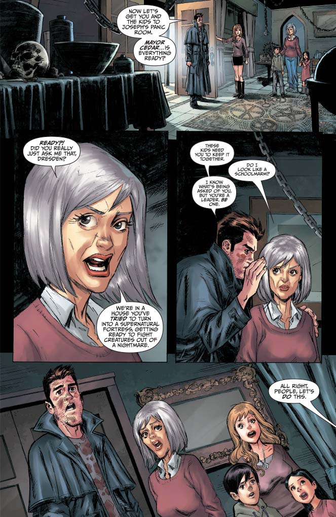 SKU: C72513020062400611 Rating: Teen+ Covers: Ardian Syaf Writer: Jim Butcher and Mark Powers Art: Joseph Cooper Colorist: Mohan Genre: Fantasy, Detective Awards: N/A Publication Date: Jul 2013 Format: Comic Book Page Count: 32 pages Rights: WW UPC: 725130200624 00611 ON SALE DATE: July 24 Harry Dresden has traveled to rural Boone Mill to smoke out the Nevernever refugees responsible for the murders of two siblings. Unfortunately, the quiet little town has proven to be treacherous, with multiple supernatural predators laying claim to hunting territory and seemingly innocent townsfolk hiding terrible secrets. Dresden has made the cursed Talbots' salvation his own personal crusade - but a bloodline can't be cleansed without a blood sacrifice!