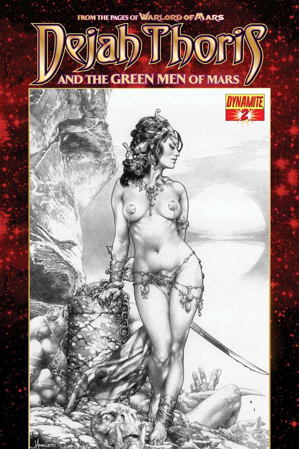Price: $3.99 Shipping: Sold OutSKU: C72513020220800211 Rating: Mature Covers: Jay Anacleto Writer: Mark Rahner Art: Lui Antonio Genre: Sci-Fi, Fantasy, Super-Hero Awards: N/A Publication Date: Mar 2013 Format: Comic Book Page Count: 32 pages Rights: WW UPC: 725130202208 00211 ON SALE DATE: March 20 UPC: 725130202208 00221 UPC: 725130202208 00231 UPC: 725130202208 00241 Things go from bad to dark, hopeless and stomach-churningly gruesome for the Princess of Helium. She's been kidnapped by rogue Thark, Voro, a black marketeer for green men with a certain forbidden taste. When she's locked in a dungeon with other doomed red-skinned women, Dejah Thoris is in for a fate that really is worse than just death. Voro's keeping the women alive and performing one amputation after another on them. Nothing but the freshest red meat for his customers.