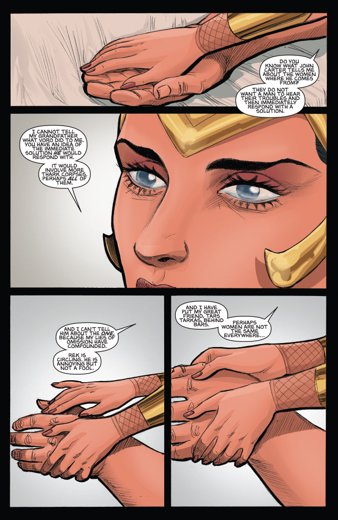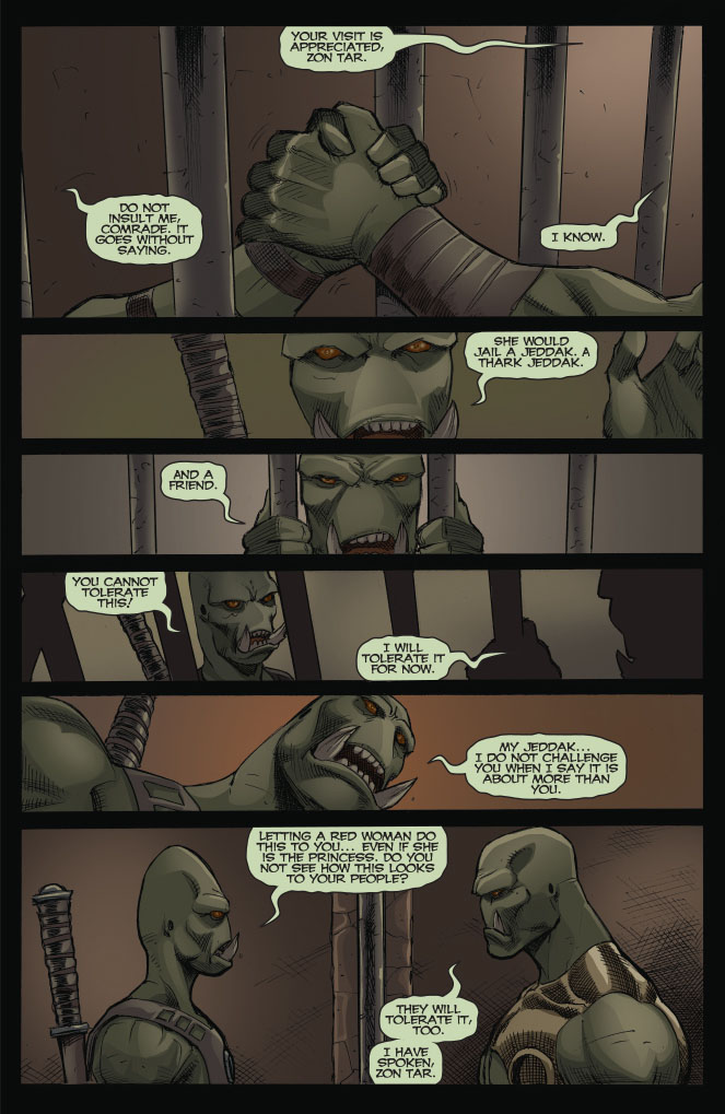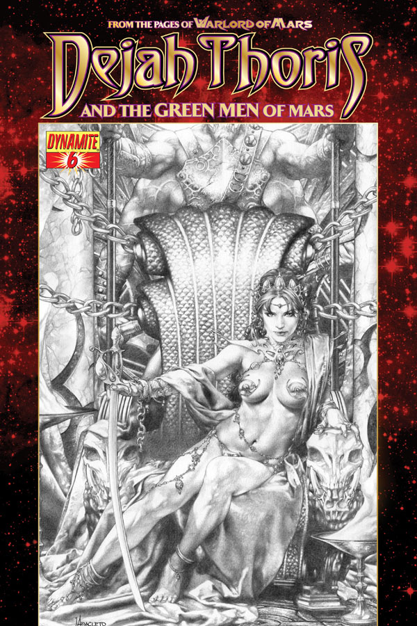 SKU: C72513020220800611 Rating: Mature Covers: Jay Anacleto Writer: Mark Rahner Art: Lui Antonio Genre: Sci-Fi, Fantasy, Super-Hero Awards: N/A Publication Date: Jul 2013 Format: Comic Book Page Count: 32 pages Rights: WW UPC: 725130202208 00611 ON SALE DATE: July 17 UPC: 725130202208 00621 UPC: 725130202208 00631 UPC: 725130202208 00641 Shaken from her near-dismemberment, Dejah Thoris must outwit the Thark terrorists set on destroying the new, peaceful status quo! The princess must also stay ahead of a former royal suitor whose prying could expose everything... and ignite a war!