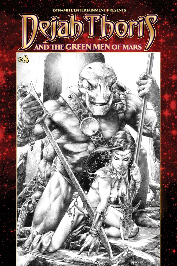 SKU: C72513020220800811 Rating: Mature Covers: Jay Anacleto Writer: Mark Rahner Art: Lui Antonio Genre: Sci-Fi, Fantasy, Super-Hero Awards: N/A Publication Date: Sep 2013 Format: Comic Book Page Count: 32 pages Rights: WW UPC: 725130202208 00811 ON SALE DATE: September 18 UPC: 725130202208 00821 UPC: 725130202208 00831 UPC: 725130202208 00841 Now expanded to 12 issues!!! Race hatred stoked by terrorists threatens to drive Heliumit's and Tharks back to war. Everything the trauma-exhausted Dejah Thoris does only seems to worsen it. And her last-ditch plan brings her face-to-face with the disfigured Thark who triggers her worst fears!