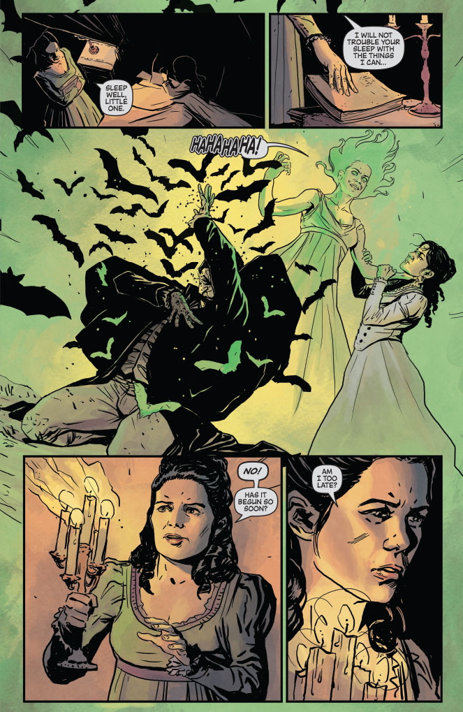 SKU: C72513020400400211 Rating: Teen + Covers: Patrick Berkenkotter Writer: Marc Andreyko Art: Guiu Vilanova Genre: Horror Awards: N/A Publication Date: May 2013 Format: Comic Book Page Count: 32 pages Rights: WW UPC: 725130204004 00211 ON SALE DATE: May 15 UPC: 725130204004 00221 UPC: 725130204004 00231 A blood-thirsty monster terrorizes the people of Collinsport! As the bodies pile up, the Collins' family faces an unspeakable truth: the killer is one of their own! The vengeance of Angelique hits Barnabas and his family hard--- and threatens to tear them, and the innocent townspeople, apart! Plus: Victoria Winters appears at the estate, but will anyone believe her warnings? Or will her tales of time-travel and vampires get her burned at the stake? The retelling of the classic "Dark Shadows" history continues here!