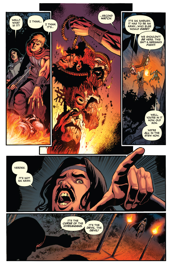 Price: $3.99 Shipping: Sold OutSKU: C72513020621305011 Rating: Teen + Fans - each cover has its own UPC so you and your retailers can order the special cover of your choice! MAIN COVER - Jenny Frison Cover UPC: 725130206213 05011 Becky Cloonan VARIANT Cover UPC: 725130206213 05021 Writer: Gail Simone Art: Walter Geovani Genre: Sword and Sorcery, Adventure, Superhero Publication Date: Nov 2013 Format: Comic Book Page Count: 32 pages ON SALE DATE: November 13 UPC: 725130206213 05031 UPC: 725130206213 05041 Red Sonja, still recovering from her near-death ordeal, leads a small band of rebels in a stealth war against the invading armada, while the supreme dealer of death Dark Annisia returns to wreak havoc on Sonja's small band of allies! Blood, lust and vengeance surround Red Sonja as she faces her ultimate foe!