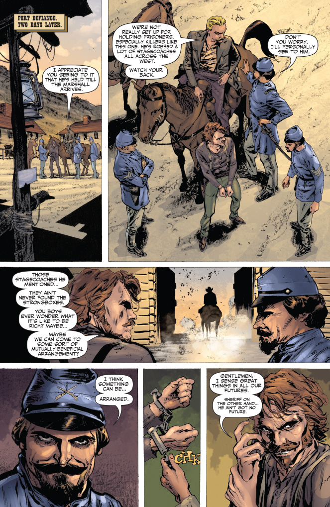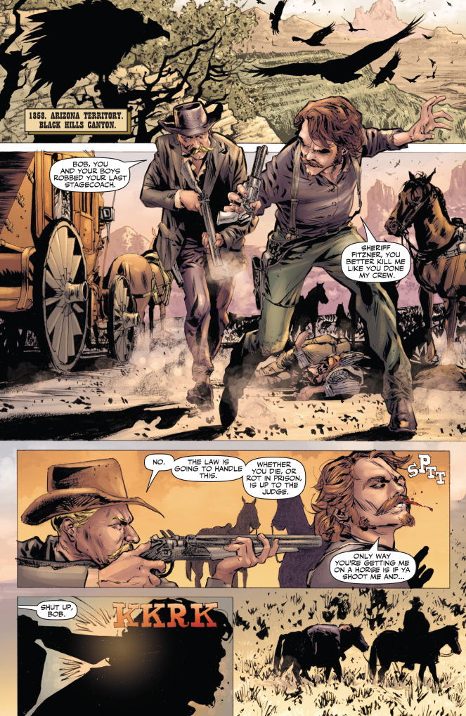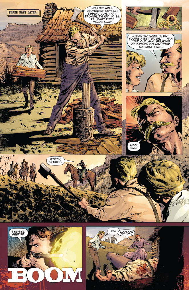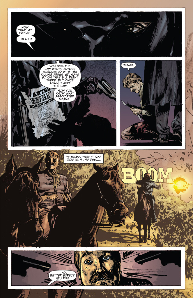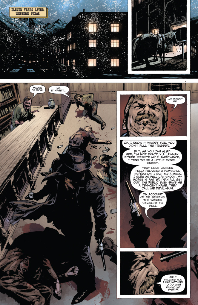 SKU: C72513020825500111 Rating: Teen + Covers: Colton Worley Writer: Shannon Eric Denton Art: Matt Triano Genre: Western Awards: N/A Publication Date: Sep 2013 Format: Comic Book Page Count: 40 pages Rights: WW UPC: 725130208255 00111 ON SALE DATE: September 25 A young man takes up a mask in pursuit of his father's killers as the feared Devil-Gun. Now Lone Ranger must confront his own ideals as he pursues this dark mirror-image of himself. Can the Ranger show his opposite coin the difference between justice and vengeance before innocent blood is spilled?