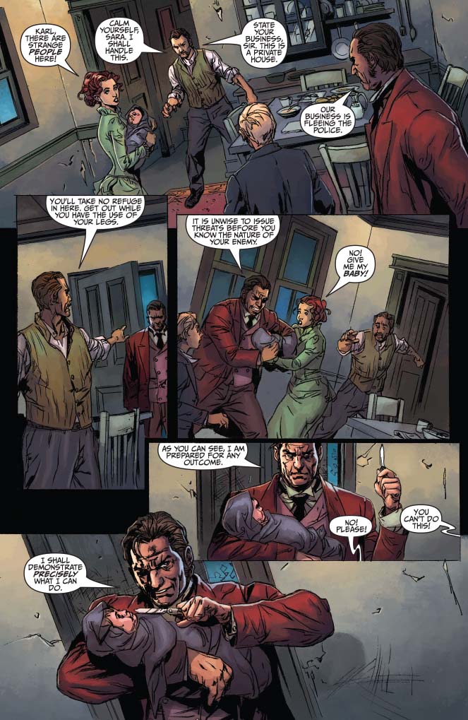 Price: $3.99 Shipping: Sold OutSKU: C72513021106400211 Rating: Teen + Covers: Francesco Francavilla Writer: David Liss Art: Daniel Indro Genre: Action/Adventure, Detective Publication Date: Feb 2014 Format: Comic Book Page Count: 32 pages UPC: 725130211064 00211 ON SALE DATE: February 12 Stranded in Switzerland, his criminal network in tatters, and with the world believing him dead, the world's most notorious villain, Professor James Moriarty, faces his greatest challenge yet - taking care of an orphaned child. Bound by a solemn promise, and determined to seek revenge against a local madman, Moriarty begins a clever campaign to work his way inside his enemy's fortress. The trap is set, and Moriarty is determined to succeed, but is he villainous enough for the task?