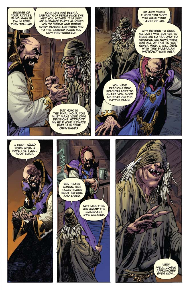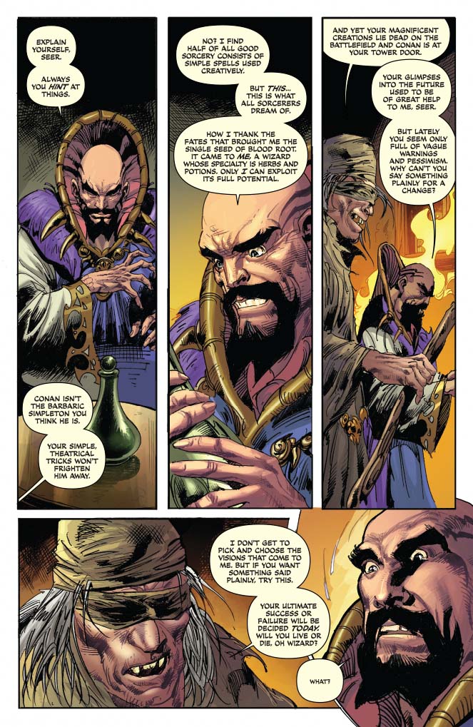 SKU: C72513023733003011 Rating: Teen + Cover A: Ed Benes Writer: Victor Gischler Art: Roberto Castro Genre: Fantasy Publication Date: October 2015 Format: Comic Book Page Count: 32 pages UPC: 725130237330 03011 ON SALE DATE: October 14 For years, the old blind Seer has helped the wizard Kal'Ang climb to power, but just when Kal'Ang needs him the most, the Seer tells the wizard he must now deal with a final threat on his own. What final threat? The wrath of Conan and Red Sonja of course. Recognizing that the scourge of blood root has risen again, the Cimmerian and the red haired hellion go after Kal'Ang with a vengeance. But what of the Seer and his secret motivations?