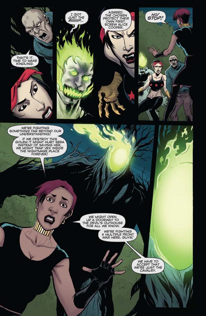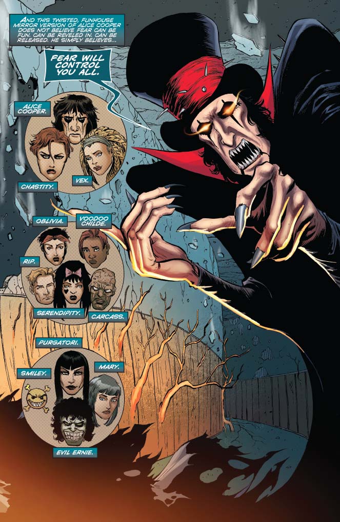 Price: $3.99 Shipping: Sold OutSKU: C72513023924205011 Rating: Teen + Cover: Joyce Chin Writer: Tim Seeley, Jim Terry Art: Jim Terry Genre: Horror Publication Date: January 2016 Format: Comic Book Page Count: 32 pages UPC: 725130239242 05011 ON SALE DATE: January 13 Alice Cooper discovers just how chaotic the Chaos! Universe can truly be, as he faces off against the horrific monsters of his own mind. Meanwhile, the Chosen tangle with a monstrous tree, while Evil Ernie is the prisoner of an even more evil pharmaceutical company! Can the unlikely alliances of Alice Cooper, the dream witch Vex, and the vampire assassin Chastity escape from a twisted nightmare realm and stop the badder guys from beating the bad guys?