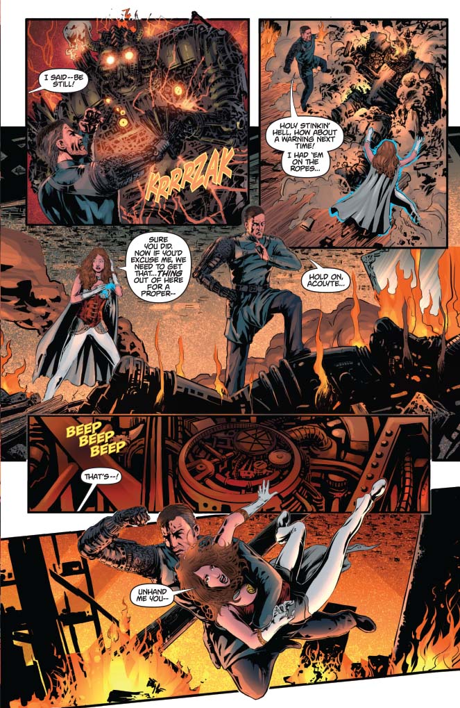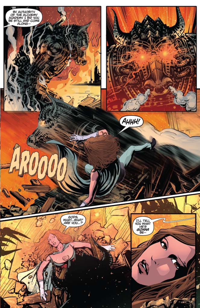 Price: $3.99 Shipping: Sold OutSKU: C72513024263102011 Rating: Teen+ Cover A: Sergio Davila Writer: Frank J. Barbiere Art: Crizam Zamora Genre: Steampunk, Fantasy Publication Date: January 2016 Format: Comic Book Page Count: 32 pages UPC: 725130242631 02011 ON SALE DATE: January 13 The steampunk police procedural continues! Mort and Jo face off against a monstrous machine, while the Alchemy Academy makes bold political moves behind the scenes. Action, magic, and political intrigue await in The Precinct from Frank J. Barbiere (Howling Commandos of SHIELD, Five Ghosts) and Crizam Zamora (Vampirella: Prelude to Shadows)!