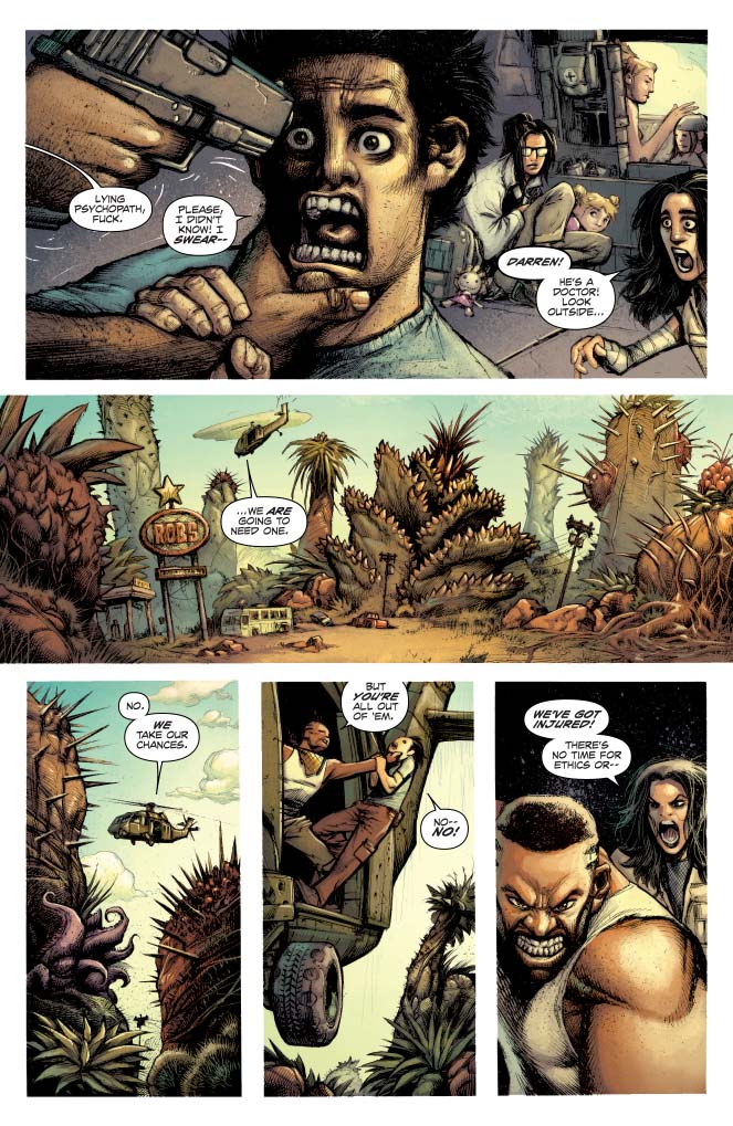 Price: $3.99 Shipping: In-Stock!SKU: C72513024365203011 Rating: Mature Cover A: Jae Lee Writer: Rick Remender Art: Jonathan Wayshak, Jordan Boyd (Colorist) Genre: Science Fiction Publication Date: March 2016 Format: Comic Book Page Count: 32 pages UPC: 725130243652 03011 ON SALE DATE: March 16 Raja and the rebel Marines have set out on a journey across the devolved wasteland to try and save humanity, only some of humanity like things just as they are. Check out the thrilling new series that Rick Remender (Black Science, Deadly Class) describes as "a heavy dose of high-octane action, character drama, a world of strange reverse mutations, and social commentary - as we follow the last tribe of humans inoculated from the devolution agent as they set out on a desperate journey to try to find a way to re-evolve life on Earth.