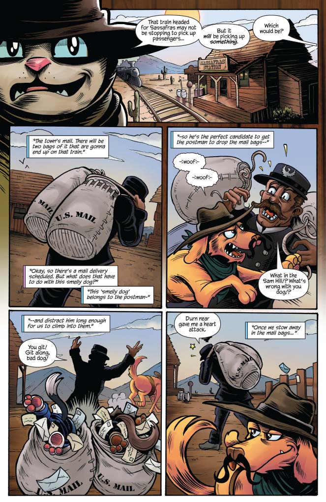 Price: $3.99 Shipping: Sold OutSKU: C72513024476503011 Rating: All Ages Cover A: Steve Uy UPC: 725130244765 03011 Cover B: Billy Martin UPC: 725130244765 03021 Cover C: Ken Haeser UPC: 725130244765 03031 Writer: Ben McCool, Elliott Serrano, Royal McGraw Art: Steve Uy, Ken Haeser, Mauro Vargas Genre: Comedy, Media Tie-In Publication Date: April 2016 Format: Comic Book Page Count: 32 pages ON SALE DATE: April 20 Grumpy Cat tells Pokey a story of one of her "ancestors", the infamous Cat With No Smile. It's a tale of the Old West with gun-toting felines, tail-chasing canines, and the biggest catnip heist in American history. Meanwhile, our curmudgeonly kitty takes a road trip with Pokey and Dog... with the intent to sabotage everyone's fun and turn the car around for home! And finally, the cats find a drone hidden in the garage, resulting in an unintended flight and crash landing in the desert. Enjoy more misadventures and mopey expressions from the World's Grumpiest Cat!
