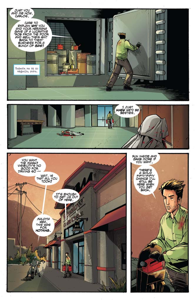 Price: $3.99 Shipping: In-Stock!SKU: C72513025132902011 Rating: Mature Cover A: Adam Markiewicz UPC: C725130251329 02011 Cover B: Kevin Stokes "Homage Cover" UPC: C725130251329 02021 Writer: Ben Fisher Art: Adam Markiewicz Genre: Science Fiction, Horror Publication Date: October 2016 Format: Comic Book Page Count: 32 pages ON SALE DATE: 10/5 Paul and Maria find themselves uneasy allies on the run in a world where any physical contact results in agonizing death. But the bloody effects of the "Divide" may be the least of their concerns when they stumble into the crosshairs of a deranged serial killer and a group of "baredevils" who thrive on the danger of exposed skin. Join Ben Fisher and Adam Markiewicz as they spin an "original and compelling twist on the post-apocalyptic genre." (Kevin Grevioux, creator of Underworld and I, Frankenstein). Each issue of THE GREAT DIVIDE comes with unique additional content. Issue #2 will include a digital code for downloading pages to a post-apocalyptic adult coloring book, drawn by Markiewicz. "I love a good concept world. A world where some crazy idea takes root, and that idea is considered and explored in depth, looked at from every angle. In The Great Divide, Fisher and Markiewicz invite us to explore this weird and isolating post-apocalyptic wasteland with them, where even the smallest human contact means a grizzly death sentence. A brilliant idea fully realized, a twisted world expertly illustrated, that's a story I can sink my teeth into!" - Reilly Brown (Cable & Deadpool, Amazing Spider-Man)