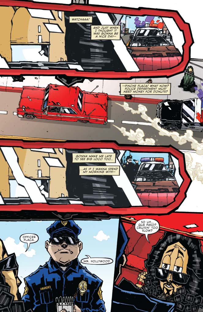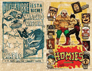 Price: $3.99 Shipping: Sold OutSKU: C72513025270802011 Rating: Teen + Cover: Andrew Huerta "Wraparound" Writer: David Gonzales, Elliot Serrano Art: Andrew Huerta Genre: Humor, Media Tie-In Publication Date: November 2016 Format: Comic Book Page Count: 32 Pages UPC: 725130252708 02011 ON SALE DATE: 11/9 When budget cuts threaten to put an end to one of the most vital programs at the Homies Community Center, Hollywood and Big Loco recruit two of the world's greatest Mexican luchadores to help put on a fundraiser! But what will they do when the good guy, Macho Mascara, gets injured before the big match? And his opponent, "El Diablo", demands payment up front? Which of the Homies will step into the ring to save the neighborhood? The Homies are back in a new series featuring the surprise hit of the 90's! Low riders meet high-flying masked wrestlers in this story of good versus evil in the squared circle. Written by Homies creator David Gonzalez and Elliott Serrano ("Army of Darkness: Ash for President"), with art by Andrew Huerta!