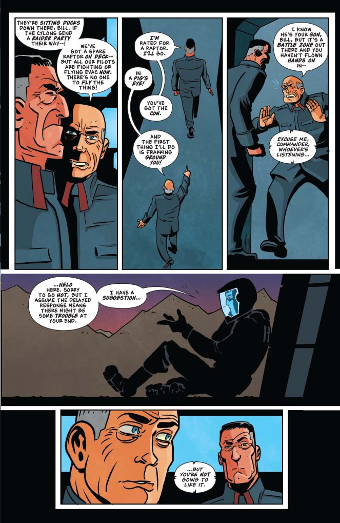 SKU: C72513025333005011 Rating: Teen + Cover A: Alec Morgan UPC: 725130253330 05011 Cover B: Pete Woods UPC: 725130253330 05021 Writer: Karl Kesel Art: Dan Schkade Genre: Science Fiction, Media Tie-In Publication Date: March 2017 Format: Comic Book Page Count: 32 Pages ON SALE DATE: 3/15 THE CYLONS ATTACK- WITH A NEW TYPE OF CENTURION! As Galactica tries to get civilian miners on a nearby planetoid to safety, their only hope may be Baltar's rebuilt Centurion, Tallos. But will Baltar's monster defend Galactica against its own, or lead the Cylon forces? Everything comes to an explosive finish you won't want to miss! SO SAY WE ALL!