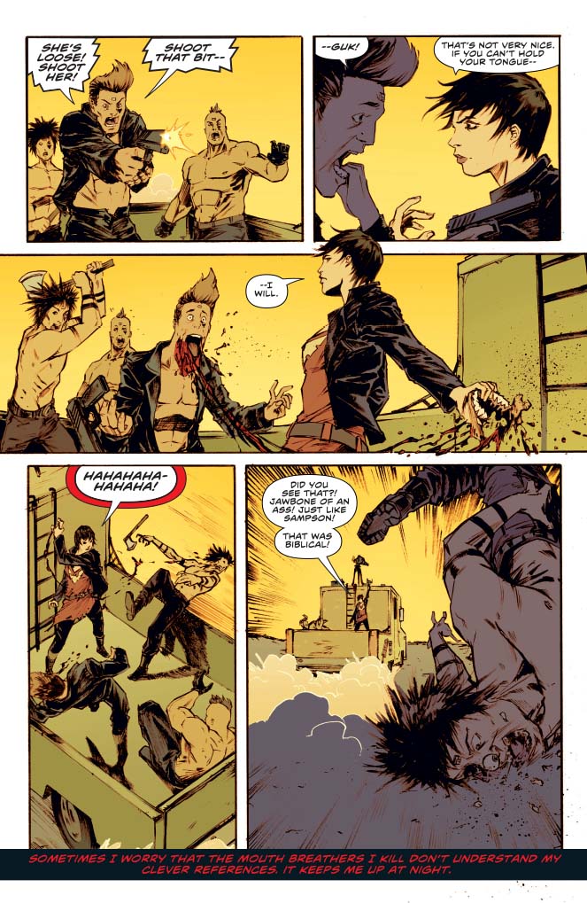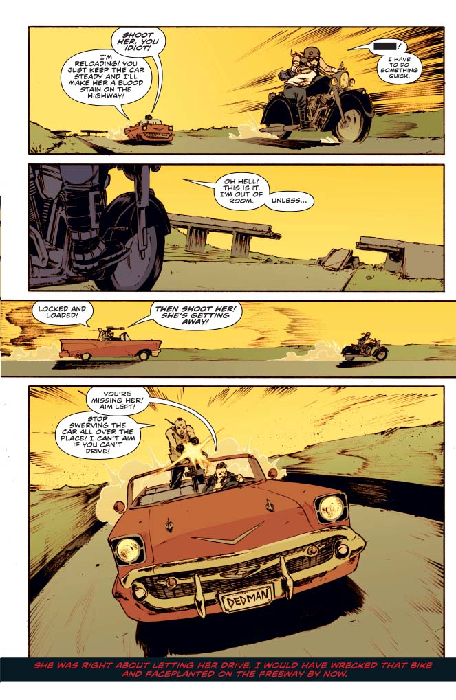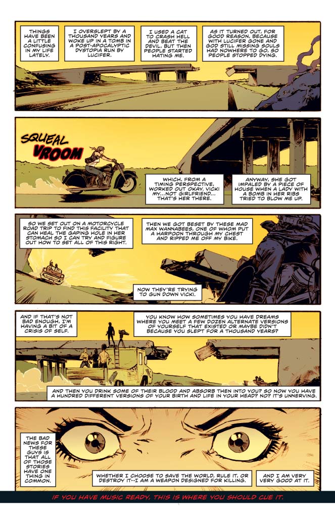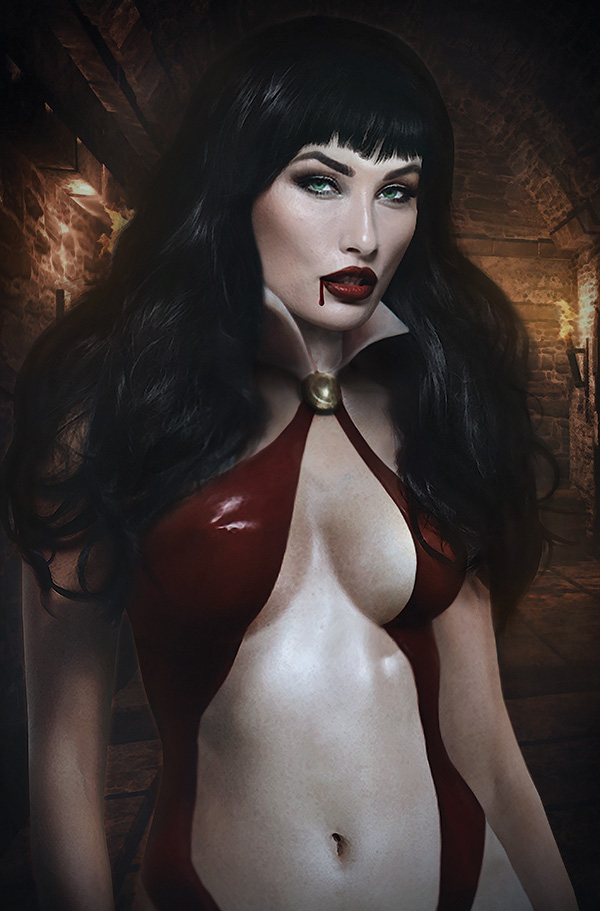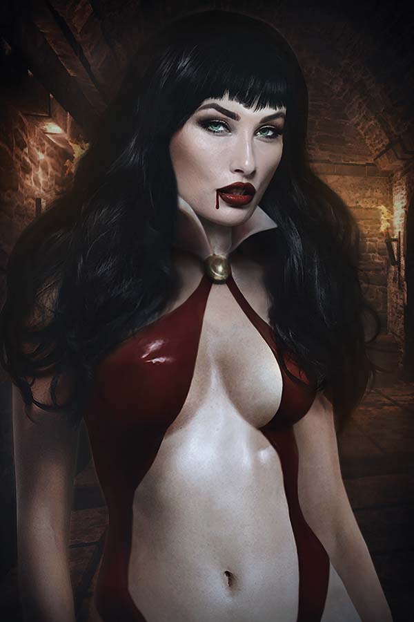 SKU: C72513025568609011 Rating: Teen + Cover A: Philip Tan UPC: 725130255686 09011 Cover B: Johnny Desjardins UPC: 725130255686 09021 Cover C: Cosplay Cover UPC: 725130255686 09031 Cover D Subscription: Jimmy Broxton UPC: 725130255686 09041 Writer: Jeremy Whitley Art: Andy Belanger Genre: Horror Publication Date: November 2017 Format: Comic Book Page Count: 32 Pages ON SALE DATE: 11/15 Vampirella's trip to save her friend Vicki and restore death to the world has hit the road, but the road is about to hit back. A mysterious boss wants Vicki dead and Vampirella tortured and has hired some heavily armed maniacs in war-ready vehicles to do it. Can Vampirella save herself and Vicki? Will they make it to their destination in one piece? Who is this person who's hunting Vampirella? Chaos reigns and a classic Vampirella character returns in part two of Jeremy Whitley and Andy Belanger's pulse pounding Vampirella epic!