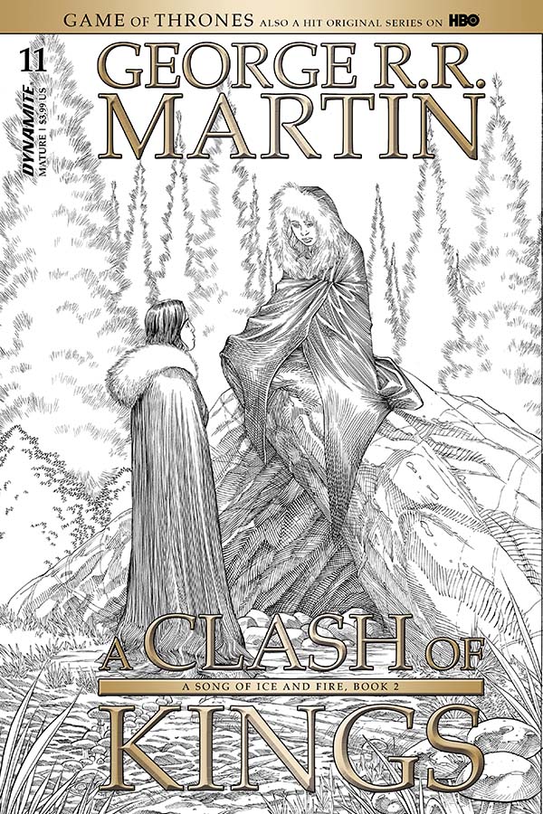 SKU: C72513025962211011 Rating: Mature Cover A: Mike Miller UPC: 725130259622 11011 Cover B Subscription: Mel Rubi UPC: 725130259622 11021 Writer: George R.R. Martin, Landry Q. Walker Art: Mel Rubi Genre: Fantasy Publication Date: May 2018 Format: Comic Book Page Count: 32 Pages ON SALE DATE: 5/30/2018 George R.R. Martin's epic A Song of Ice and Fire series continues with this latest installment of A Clash of Kings!