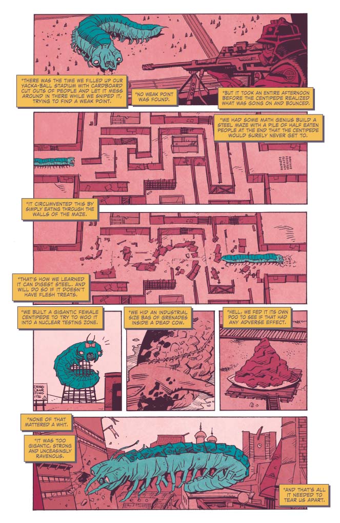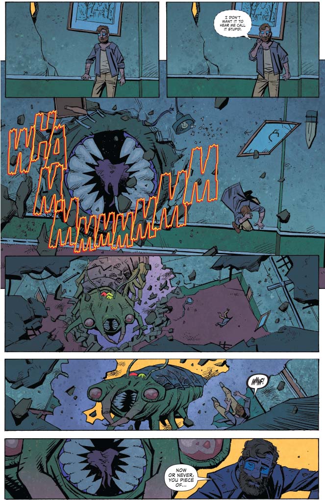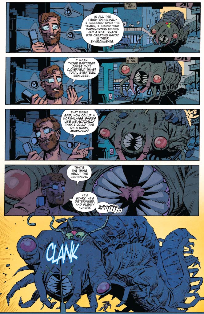 SKU: C72513026014702011 Rating: Teen + Cover A: Francesco Francavilla UPC: 725130260147 02011 Cover B: Eoin Marron UPC: 725130260147 02021 Writer: Max Bemis Art: Eoin Marron Genre: Science Fiction, Media Tie-In Publication Date: August 2017 Format: Comic Book Page Count: 32 Pages ON SALE DATE: 8/9 Dale is on a hero's journey, but it is not one for glory. It is for revenge. He has survived this long on his own, but now he has decided the only thing left for him to do is kill the giant monster that took everything away from him!