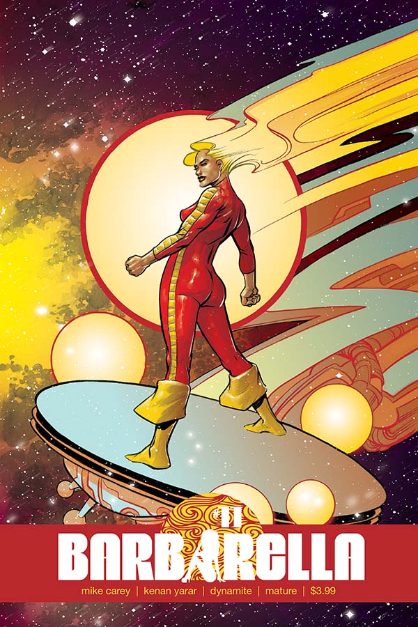SKU: C72513026335311011 Rating: Mature Cover A: Eric Powell UPC: 725130263353 11011 Cover B: Ryan Browne UPC: 725130263353 11021 Cover C: Kyle Strahm UPC: 725130263353 11031 Cover D: Ediano Silva UPC: 725130263353 11041 Cover E Subscription: Kenan Yarar UPC: 725130263353 11051 Writer: Mike Carey Art: Kenan Yarar Genre: Science Fiction Publication Date: October 2018 Format: Comic Book Page Count: 32 Pages ON SALE DATE: 10/24/2018 In the red corner: a titanic space armada with the last word in planet-busting weaponry. And facing them: the Esseverine, a peaceful people with no technology or tools at all. Nothing. Not even a pointy stick. But they do have Barbarella. Place your bets!